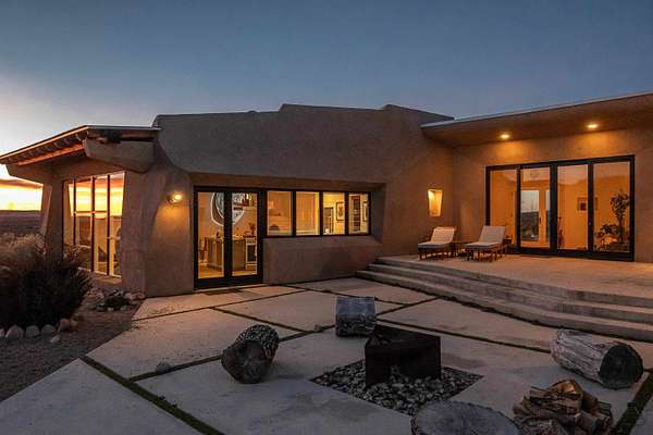 Live inside a work of art in this Artist's Dream Dwelling in Taos. Welcome to ATOMICA- a home unlike any other- where art, nature and architecture meet in perfect, unconventional harmony. Designed and built by internationally acclaimed visionary artist Allan Packer, this inspiring Taos retreat is anything but ordinary. The property consists of a house, a guesthouse, and a studio on 3 acres. Organic, offbeat and unconventional in the best possible way. Sculpted thick pumice walls and large windows incorporate and frame the stunning views into a magical, serene space imagined to inspire. The layout defies expectation- fluid and intuitive, built to honor light, shadow and the surrounding land. The main house consists of 2 suites radiating off a large great room made up of an impressive kitchen space and a cozy sunken living room anchored by a whimsical fireplace. Step right out onto the stunning back patio with a firepit, hot tub and jaw dropping views in every direction. The guesthouse is fully equipped with a kitchen and has an established history of rental income. Set atop a peaceful rise, tucked near the edge of the Rio Grande del Norte National Monument, you're just minutes from breathtaking hikes where bighorn sheep roam, epic mountain biking trails, and the quiet power of the river below. The home also overlooks the 16th hole of the Taos Country Club and golf course, blending wild nature with wide-open fairways. This is not just a home-it's a living, breathing work of art. It's a space for dreamers, makers and seekers. Whether you're an artist, writer, hardcore recreationalist or someone simply craving authenticity and soul in a sea of sameness, this home offers something rare: a chance to live in art, not just hang it on the wall. One-of-a-kind. Off the beaten path. Totally Taos. Serious inquiries only. Magic lives here.