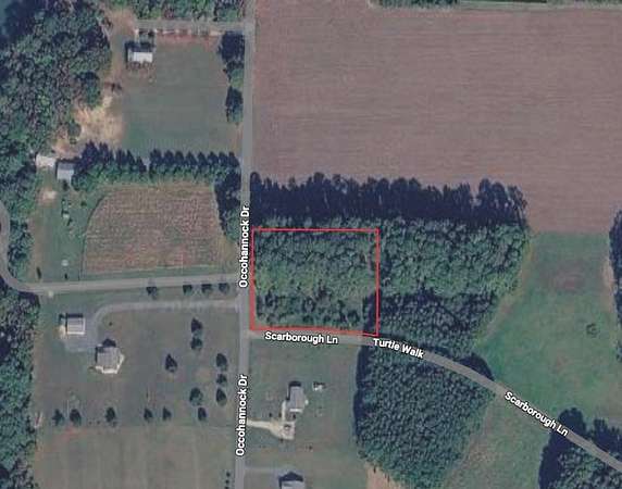 1.38 acre wooded corner lot in Belle Haven at the intersection of Scarborough Lane and Occohannock Drive. VDH-approved septic certification on file with 450 GPD capacity, 900-gallon tank, and 4-line drainfield design. Electric available at the road. Well location designated on the approved site plan (not yet drilled). Level terrain, paved and state-maintained road frontage, no HOA, no deed restrictions. Zoned residential. Access to nearby Occohannock Creek for fishing, kayaking and boating. Buyers encouraged to verify creek access details. Mature pine and hardwood trees throughout.