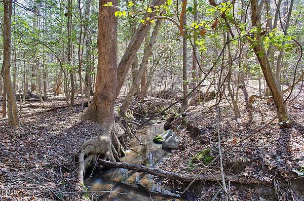 46-acre tract in the gated Peninsula at Kerr Lake community offers a rare combination of private acreage and direct recreational access. The land features 2.5 acres of open fields, mid-aged pines, and creeks bordered by mature hardwoods. A standout feature is the 3,200 feet of frontage along Army Corps of Engineers land, providing an expansive natural buffer and direct access to public game lands for hunting and hiking. While private docks are not permitted, the property includes a deeded boat slip in the community dock for immediate lake access. The community allows for stick-built homes, horses, and various pets, with hunting and recreation permitted under existing covenants. Soil map indicates good percing soils, and the property offers the flexibility to be subdivided into a maximum of three parcels. This tract provides the seclusion of a large acreage estate with the security of a managed community and convenient proximity to Kerr Lake's boating and recreation.