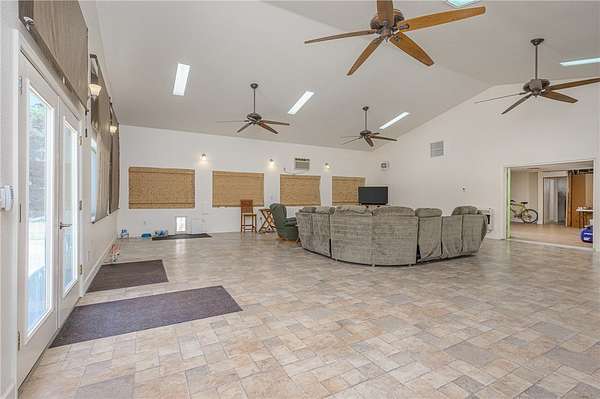 - Breakfast Bar, Ceiling Fans, Dining Area, Great Room, Kitchen Island, Main Level Primary, Open Floorplan, Primary Suite, Solid Surface Counters, Vaulted Ceilings, Walk In Closets
