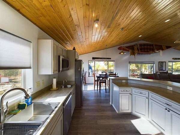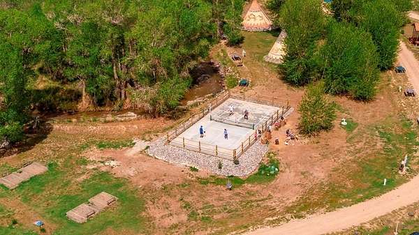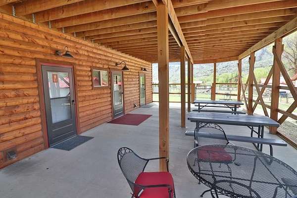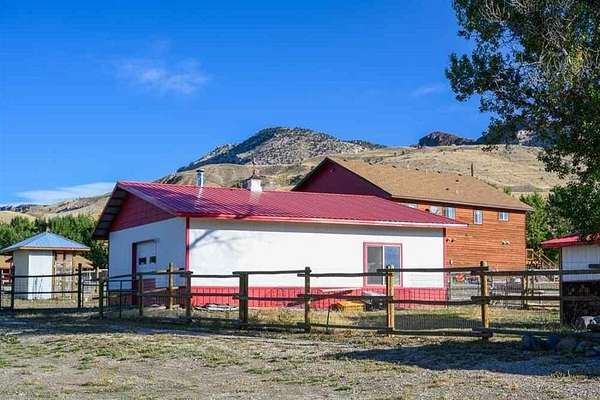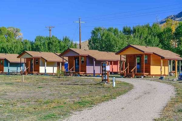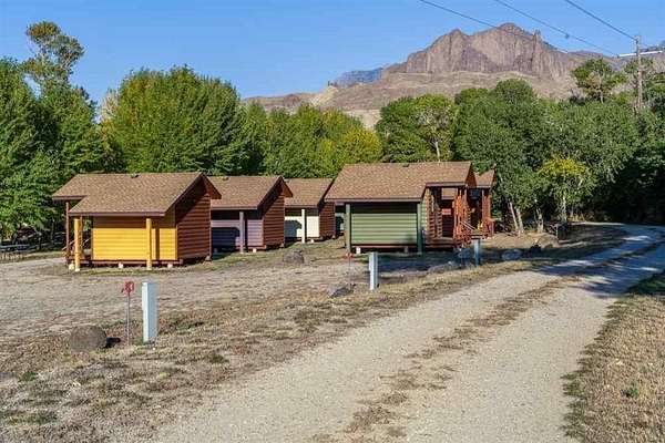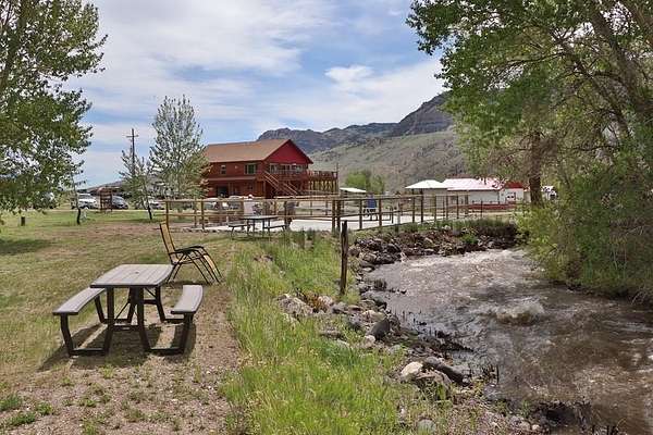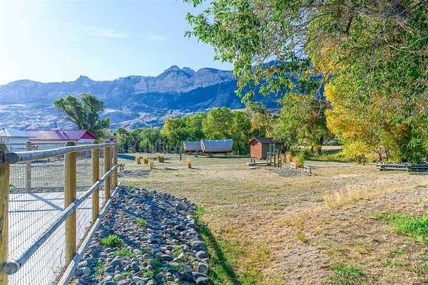 5+ acres of prime stream side frontage & Mountain View property in the heart of NW Wyoming's Yellowstone & Wapiti Valley. Located just West of Cody, WY; this property offers a multitude of uses given the location, cabins, Conestoga Covered Wagons, cottage, barns, shops & residences. It is a gorgeous place to live, a luxury glamping site or a hobby farm. Seeking visionary buyers to capitalize on the region's natural beauty, abudant wildlife and thriving tourism scene. All structures are newly built or incredibly well maintained including: A 3800+ sf log sided building with a beautiful owner's residence upstairs. The main level is comprised of a state-of-the-art mechanical room, ample laundry facility, kitchenette/office and clean/modern guest showers and bathrooms. 10-furnished log sided cabins are 12'x16' and were built on site. The five Conestoga Covered Wagons are custom built in the USA, have space for 2-3 beds and are the creme de la creme of the glamping world. The cottage is 1200sf, completely furnished, full kitchen, will sleep up to six. Newly built in 2024, a 3100sf pole barn with five 14' high shop doors (stores Conestoga Wagons perfectly over the winter). In addition, there is a three car detached garage, 7-RV hook-ups, streamside firepits & fenced paddocks for pets & farm animals. All of this with a private well, septic & multiple electric panels. So many possibilities with this property, with easy access off of State Hwy 14 also known as Yellowstone Hwy.