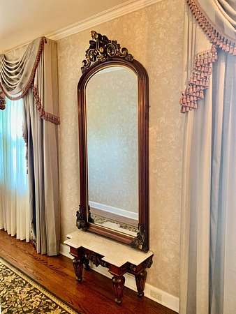 Est $3,242/moPrivate Oasis in town on 4.5 ac. Grand entrance designed for entertaining LR/DR/den comb, impeccable crown mldgs. tasteful touches of wallpapers & exquisite wood floors throughout. Huge gourmet kit.w brkfast room stunning granite island-bar fabulous cabintry, walk in pantry dbl ovens Jenn air range three sinks wine refrig. Tiled BR's with dbl sinks spacious primary suite w gorgeous BR jetted tub large glass shower vanity style his/her sink separate toilet & bidet. Fabulous large enclosed sunroom overlooking lush landscaped yard w huge trees & large stg. bldg. Your own park in the middle of town.