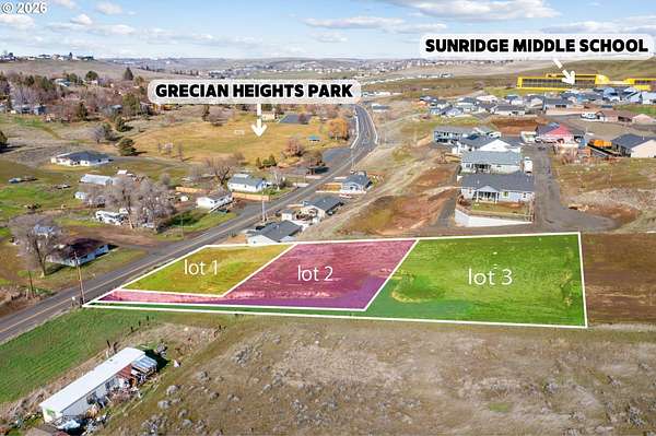 Est $384/moSitting prominently in the contemporary "Sundridge Subdivision" - LOTS #1,2,3 are build ready. 3 Parcels available. Lots 1,2,3. See MLS#'s 245496233, 338399274, 482384223...$55k, $65k, $75 These prime parcels offer impressive mountain views - the higher up the hill - the better the view. Nestled on a generous corner lot at the edge of the city limits, these prime buildable lots are just a few steps away from Pendleton's gorgeous Grecian Heights Park - with close proximity to Sunridge Middle School, medical facilities and shopping. The sewer tap is on the lot and water is stubbed in. Electrical and Gas readily available. Build!