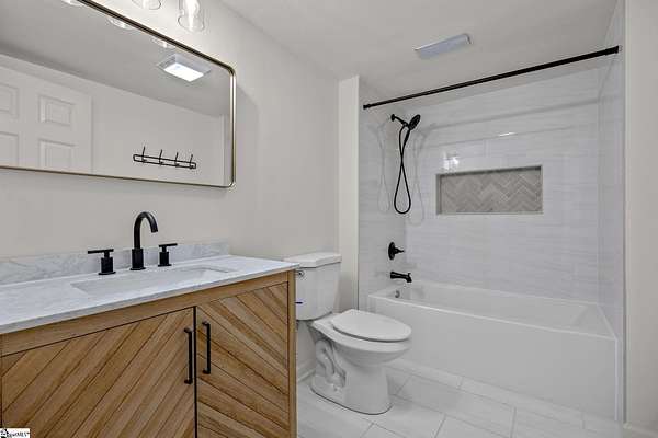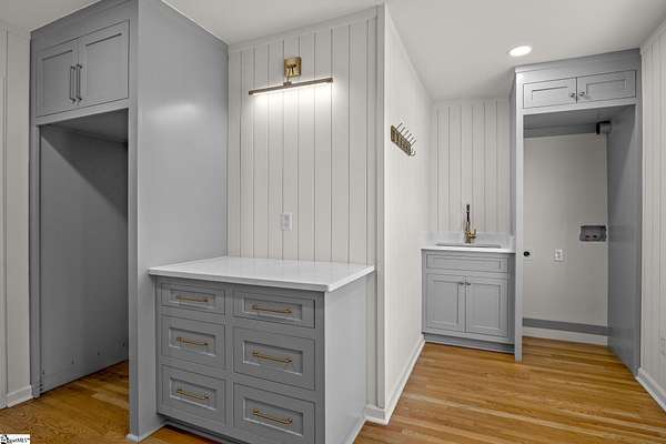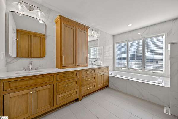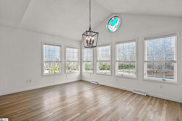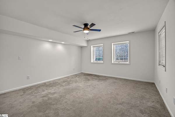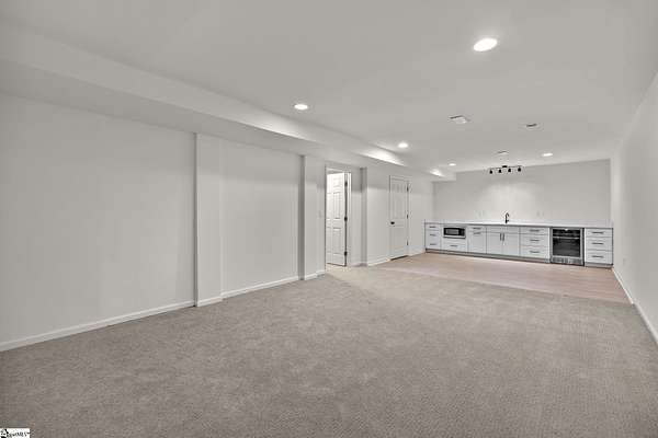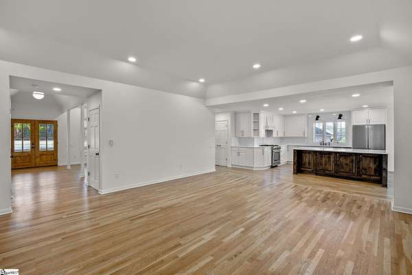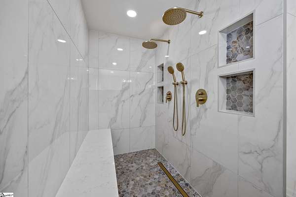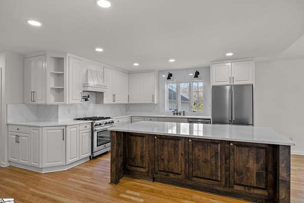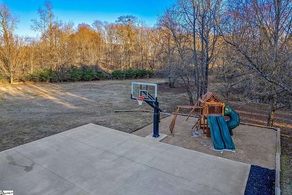 Contact William for a private showing (864)720-4233. Luxury, privacy, and convenience come together at 1 Sweetbriar Court—an estate offering over 5,400 square feet on almost 2 acres in the highly sought-after Riverside school zone with no HOA fees, tucked inside a quiet one-street neighborhood with no through traffic. Homes with this much space, land, and location—just minutes to Riverside High, I-85, GSP International Airport, downtown Greer, and award-winning downtown Greenville—are rare, and when they hit the market, they tend to move quickly. From the moment you enter, the home feels timeless and elevated with beautiful wood flooring throughout the main level and a layout designed for both everyday comfort and entertaining. The heart of the home is the expansive open kitchen and living area, featuring custom cabinetry, white quartz countertops, a large oversized island with additional storage and bar seating, a deep undermount sink, a natural gas range with a pot filler, and high-end stainless steel appliances. The kitchen flows into an eat-in breakfast nook with a stained-glass window that adds character and charm, and it opens to the large back porch—perfect for hosting, grilling, or simply relaxing while taking in views of the property. The main level offers flexibility with multiple spaces that can serve as a formal dining room, sitting room, playroom, or home office setup, plus an oversized laundry area with abundant storage and a full sink, conveniently located near the garage and ideal for daily function and organization. The home also includes two separate laundry areas with washer and dryer hookups, providing convenience for multi-level living and busy households. A built-in dog wash/dog bath is another standout feature—perfect after time outdoors on nearly two acres. The main level includes three bedrooms, including the primary suite with porch access and an elegant en-suite bathroom with a dual sink vanity, a large soaking tub, and a separate tiled shower with upscale finishes. Downstairs, the walk-out basement expands the home’s possibilities even further with a large family room and multiple flex spaces that can easily accommodate a home theater, gym/workout room, game room, craft room, or e-learning area. The basement also includes two additional bedrooms, a full bathroom, and a fully equipped wet bar/kitchenette featuring a wine cooler, sink, built-in microwave, and pantry/closet—ideal for entertaining, guests, or multi-generational living. There is also additional unfinished square footage for storage or future expansion if desired. Outside, the property delivers the kind of space and usability that is increasingly hard to find: a mostly level lot with mature trees for privacy and water views of a small pond. The walk-out basement opens to a large concrete patio beneath the back porch, creating a shaded outdoor area that’s enjoyable even on rainy days or hot summer afternoons. The extended concrete pad offers abundant parking for entertaining, extra vehicles, or an RV/camper, and it also includes a built-in basketball court and hoop. And despite being so close to everything, the setting feels peaceful and private—you’ll regularly see deer, turkey, and other wildlife on the property. With cleared open yard space, wooded privacy areas, and a serene location minutes from Greenville, Greer, and GSP, this is a one-of-a-kind opportunity in the Riverside area. Schedule your private showing soon—homes like this, with this location don't stay available for long!