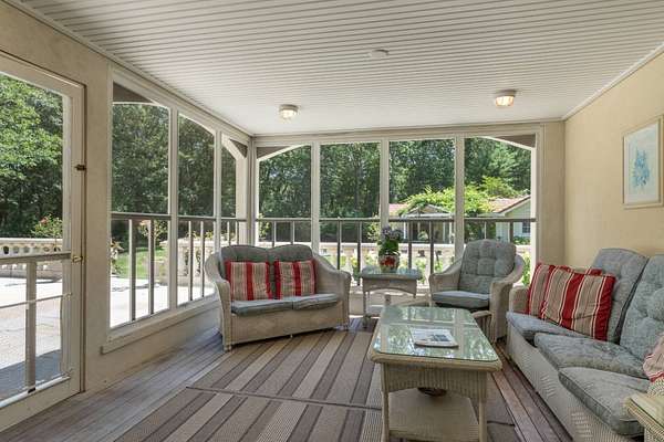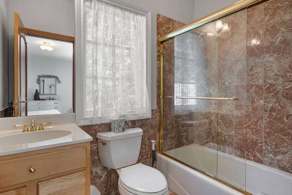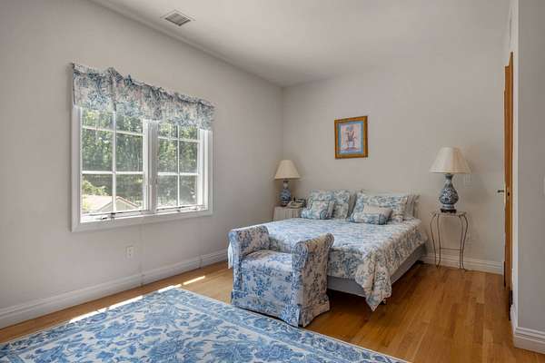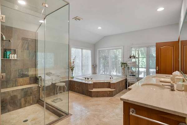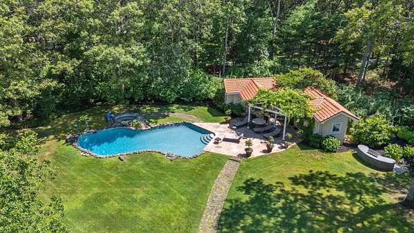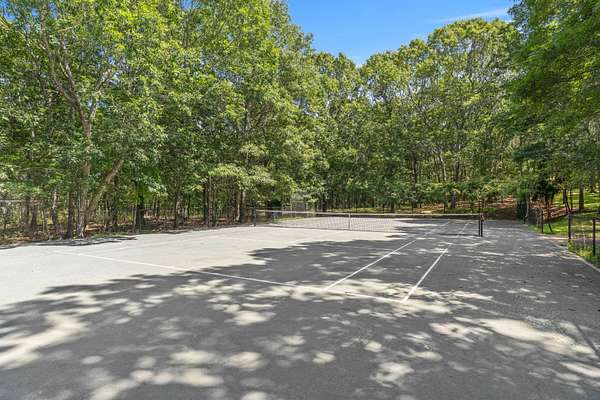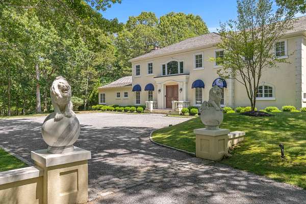 Welcome to *Dancing Oaks*, an extraordinary French Mediterranean estate tucked behind gates on approximately 4 acres in the exclusive Grace Estate of East Hampton. This elegant residence offers a rare blend of timeless European-inspired architecture and modern amenities, all set within one of the most protected and ecologically significant enclaves on Long Island. A winding, formal driveway sets a refined tone on approach, leading to a stately double-door entrance. Step inside to a dramatic two-story foyer with a sweeping staircase and a direct sightline to expansive slate terraces, adorned with balustrade railings. The main level showcases grand entertaining spaces including a formal living room that opens to the terrace, a sophisticated dining room, a media/family room, and a screened garden porch ideal for three-season enjoyment. The first-floor primary suite is a private retreat, complete with a sitting room featuring a gas fireplace, a generous walk-in closet, and direct access to a private terrace. The spa-inspired bathroom includes a jacuzzi tub, a glass-enclosed double shower with six heads and multiple spray features, offering a true at-home spa experience. The chef's kitchen is built for both function and style-equipped with granite countertops, a large center island, wine cooler, dual sinks, hot water dispenser, two dishwashers, top-of-the-line appliances, and an adjacent pantry with additional refrigerator, laundry, and storage. Upstairs, you'll find four ensuite bedrooms with beautifully appointed marble baths and a spacious family room with fireplace overlooking the grand foyer. A separate guest wing includes a three-bedroom suite, ideal for visitors or extended stays. The fully finished lower level offers lifestyle versatility, with space for a screening room, gym, wine cellar, expansive storage, and a family sitting area. Outdoors, the amenities are equally impressive: a Har-Tru tennis court, a heated gunite pool with integrated spa designed to resemble a natural pond (complete with spouting crane fountain and dual stone waterfall), and two guest cottages with kitchenettes, laundry, and outdoor showers-perfect for summer entertaining or private guest quarters. The landscape is a living masterpiece with towering rhododendrons, forsythias, lilacs, hydrangeas, crepe myrtles, and more-all curated to ensure continuous blooms from spring through fall. Over three acres are dedicated to native plants, sustaining local birdlife and wildlife and reinforcing the estate's eco-conscious footprint. The Grace Estate is a 623-acre sanctuary of protected forest, beach, and wetlands. Its preservation is one of East Hampton's greatest conservation success stories, ensuring permanent tranquility and privacy for its residents. As part of this premier enclave, owners enjoy access to a resident-only trail leading to a quiet bay beach with picture-perfect sunsets. With 8 bedrooms and 9 bathrooms in the main home, plus 2 additional poolside cottages, *Dancing Oaks* offers the perfect balance of luxury, comfort, and natural beauty in one of the Hamptons' most coveted settings. Discover refined living with deep roots in conservation and serenity-just moments from the best of East Hampton.