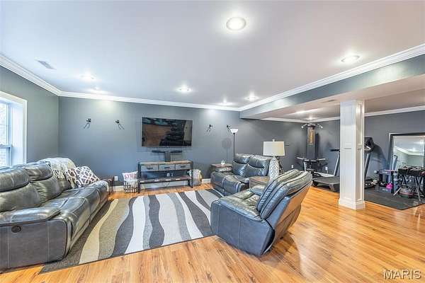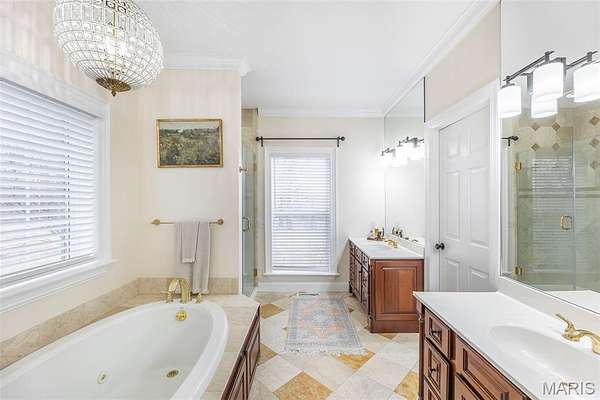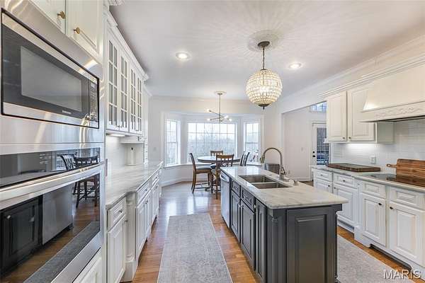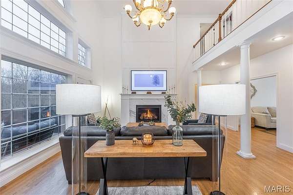 Amazing curb appeal sets the tone for this stunning all-brick estate, perfectly positioned on a picturesque homesite with a sweeping drive. Offering over 6,000 square feet of beautifully updated living space, this 6-bedroom, 5-bath home seamlessly blends timeless design with modern comfort. Inside, soaring cathedral ceilings and abundant natural light create an impressive yet welcoming atmosphere. The spacious living area features a cozy gas fireplace, while the beautifully appointed kitchen showcases new appliances and a custom island that serves as the true heart of the home. Thoughtful upgrades throughout provide both style and peace of mind, including a whole-home water filtration system, new thermostats and updated HVAC motherboards, tinted living room windows, updated lighting and ceiling fans, custom blinds, and a custom-designed master closet system. The expansive full basement, complete with newly added concrete flooring, offers endless potential for additional living, recreation, or storage space. Step outside to your private backyard retreat featuring a newly built deck, pool, and hot tub--perfect for relaxing or entertaining. Extensive dirt work and professional landscaping have transformed the property, including extending the backyard by 15 feet and clearing approximately 50 trees to maximize usable space and open up the grounds. With its combination of size, upgrades, and resort-style amenities, this exceptional home offers luxury living at its finest.