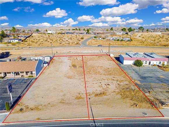 TWO LOTS next to each other are zoned C-1 (Commercial) and are for sale in an established commercial area. This location is right next to the freeway and is well established with other commercial operations near by. Interstate 15 freeway access is ideal. Topography is generally flat. City of Victorville, San Bernardino County. Seller has not investigated combining the lots, however it appears others in the area have done so for larger buildings and developments. Other easy access is Hwy 395 to the West, I-40 to the N. Check out the location, very central with great freeway access, as well as highway and other thoroughfares. Utilities are already established in the area with an existing commercial building next door. Curb and gutter already there, city of Victorville water available. Utility easement at rear, does not impact use or access of properties - easily visible see overhead map. Low tax rate in this area also.