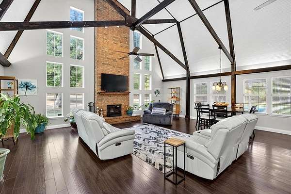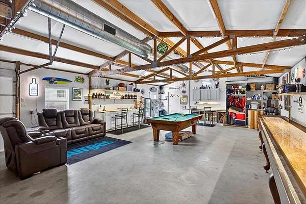 Discover your own private getaway on 12.75 gated and beautifully maintained acres! This 4-bedroom, 2.5-bath home offers incredible space with soaring vaulted ceilings, an open-concept layout, and granite countertops throughout. The dedicated office is perfect for remote work or personal projects. Step outside to a peaceful, wooded backdrop where you can relax or entertain on the covered back porch overlooking the sparkling swimming pool and hot tub. Outdoor enthusiasts will love the seclusion, abundant wildlife, and endless room for recreation. The impressive heated and cooled shop is currently set up as a game room—complete with pool table and shuffleboard—ideal for gatherings year-round. Whether you’re seeking a quiet retreat, a hunter’s paradise, or a property built for entertaining, this one checks every box. Serenity, space, and fun all in one place ! Survey and T-47 provided. Buyers will need to purchase a new survey if needed. Buyers and buyers agents are responsible to confirm all information provided. Washer, dryer, and refrigerator will convey with the home.
