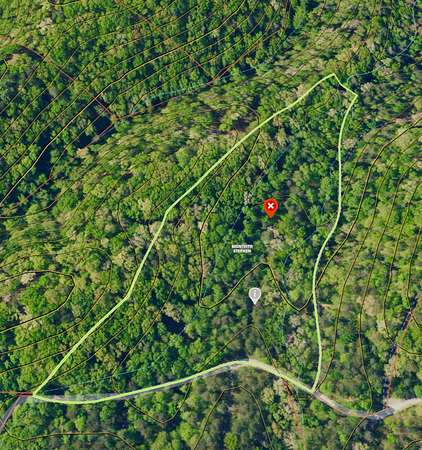 A trail or future driveway leads from the road frontage through maturing hardwood & spruce timber to a private, hilltop build site.