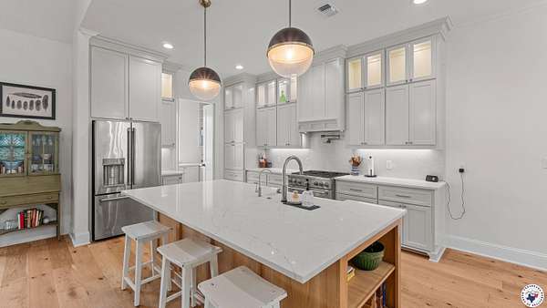 Luxury just became more accessible! This stunning 2023 custom-built home, originally priced over $800,000, now offers an exceptional value with a recent $75,000 reduction. The market has spoken, making this exquisite property an even more compelling opportunity. Nestled in the highly desirable Pleasant Grove Schools, this two-year-old residence epitomizes modern design and functionality. Its sophisticated Batten Board exterior welcomes you, while graceful arches lead into a soaring, vaulted living and dining space - an ideal setting for both intimate family moments and grand entertaining. Enjoy seamless internet connectivity with advanced Cat 6 wiring, and pristine drinking water from a private well, purified by a reverse osmosis system. Three efficient 4-ton Trane HVAC units ensure optimal climate control year-round. An extra-wide concrete driveway provides abundant parking for guests. The chef's dream kitchen is a masterpiece, featuring a farmhouse sink, pot filler, illuminated cabinetry, and a fully equipped butler's pantry. Retreat to the luxurious primary suite, complete with a fabulous en-suite bath and a cleverly designed wrap-around laundry area for ultimate ease. The spacious family room captivates with warm oak wood floors, a raised hearth fireplace, and ample wall space for art or a large television. Each bedroom offers generous proportions, including an upstairs en-suite that's perfect for hosting special guests. All bathrooms showcase distinctive tilework, adding a unique accent to every space. Step outside to an expanded patio, framed by vibrant landscaping, colorful flowers, and charming cedar wood accents, enhancing the home's already irresistible appeal. Experience the "right stuff" at an even better price.