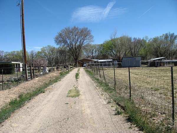 Located in the Los Chavez community and tucked away at the end of a private quiet road, this property offers rural country living, privacy, functionality, and natural beauty. Situated on 2 acres, you'll find mature trees, irrigated grass, and valuable water rights (buyer to verify) . The east fence borders an irrigation ditch, providing convenient access to the property's irrigation system and enhancing the peaceful, country feel. Nice laminated flooring in kitchen, dining, and living area. This horse-zoned property offers incredible flexibility with several outbuildings/barns, corrals and storage sheds. Recent updates provide peace of mind, including a new septic (2022) and well pump and motor (2025) and well tank (2017)