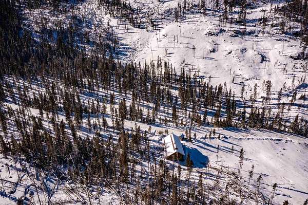 From main core of Taos Ski Valley, Drive up Twining Road to the Bavarian/Phoenix (Area approximately 2 miles). Drive on dirt road past the Phoenix Restaurant and take the first left. Lot is on top of hill on the left.