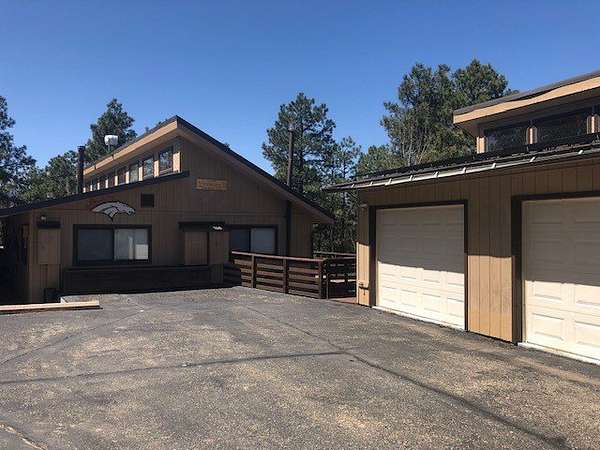 Spectacular country mountain retreat in Pendaries Village. The home is two stories with decks on three sides. Upstairs is ground level in the front, and includes 2 bedrooms and one full bath. Downstairs opens at ground level in the back of the house and has 3 bedrooms and 2.5 baths. Back deck has a hot tub which looks through tall Ponderosa. Original 2-car garage is detached from house but from the downstairs through covered porch. It has a concrete floor, 2 murphy beds, and half bath. A newer 2-car garage is a little downhill from the house, and has two large garage doors, and a small one which would accommodate UTVs and motorcycles. All this on 5.179 forested acres. There is a 4.62 kilowatt solar system and a 22 kilowatt Generac generator, which backs up the whole house and has an automatic transfer switch. Live in it full time and use it for a family retreat.