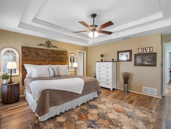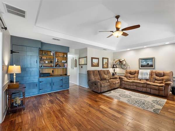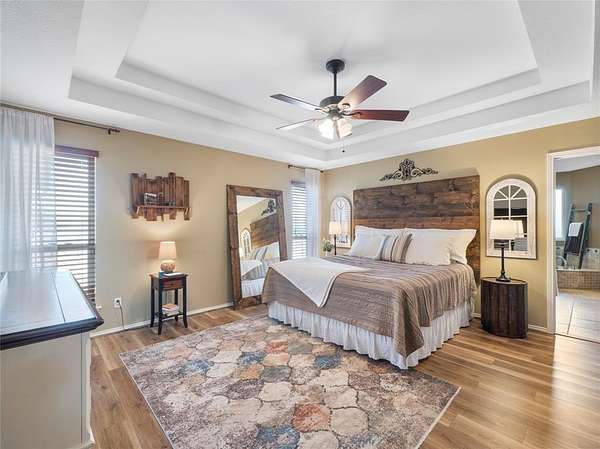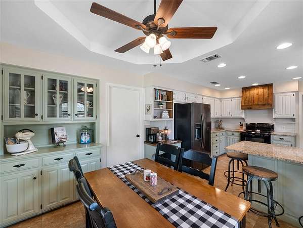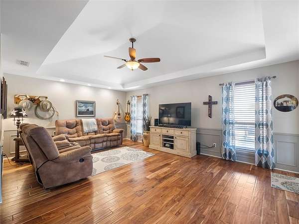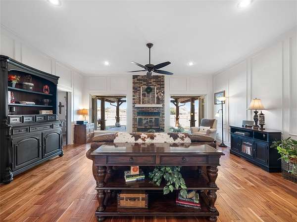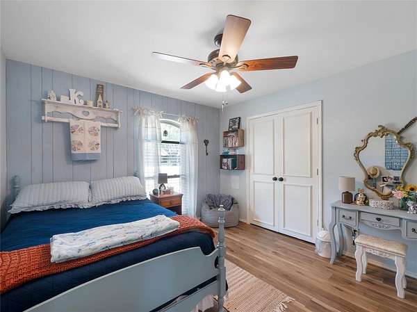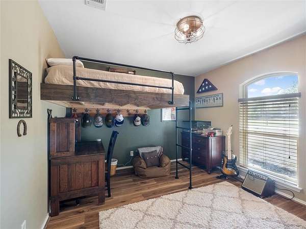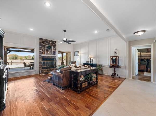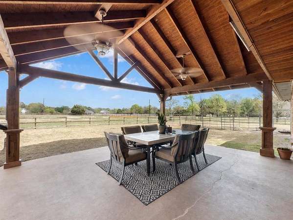 This Ranch style home is nestled on a sprawling two-acre lot within the highly coveted Lovejoy ISD. From the moment you enter this home you are met with the warmth of the Farmhouse charm with beamed ceilings, rich wood treatments, and massive windows that bathe the home in natural light and overlook the backyard. Designed for comfortable daily living, the floor plan offers two oversized living areas. The kitchen is updated with ship lapped walls, painted cabinetry, open shelving, and a farmhouse-style wooden range hood. Enjoy your morning coffee in the sun-drenched dining area, complete with a bay window, built-in hutch, and planning desk. Retreat outdoors to your own backyard paradise. Whether you are sipping iced tea under the cedar-covered back porch, hosting a summer barbecue on the open patio, or tending to horses in the on-site barn, this property offers the ultimate Texas lifestyle. Property Highlights & Features - Premium Acreage: 2 pristine acres, fully fenced and cross fenced with a 4-rail pasture fence. Equestrian Ready: Functional horse stable and barn with water and electricity. Storage Galore: Oversized garage with built-in storage, a Wall Control garage organizer, and massive walk-in closets throughout. Warm Custom Details: Shiplap accent walls, custom cabinetry, and exquisite wood paneling. Peace of Mind: including a mosquito misting system, advanced security cameras, and a Leaf Filter gutter system.