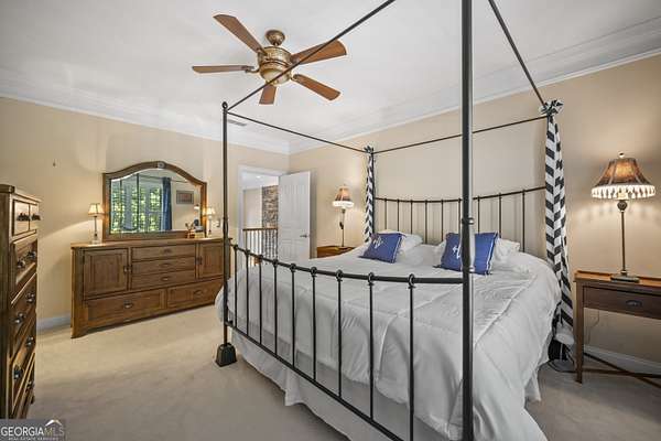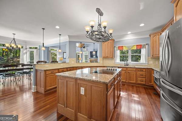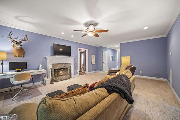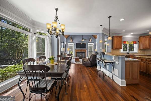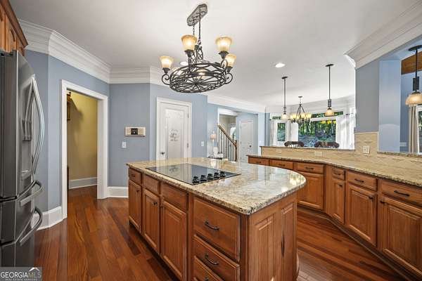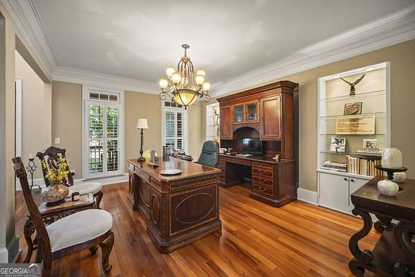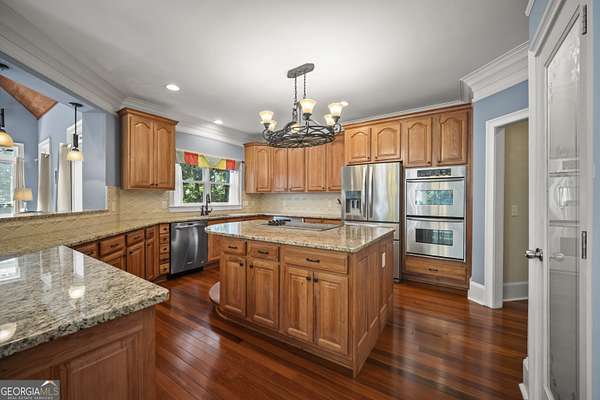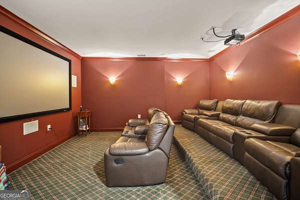 Luxury Estate with Theater, Saltwater Pool & Designer Details on 5 Acres Welcome to an extraordinary opportunity to own a refined 5-bedroom, 5.5-bath estate nestled on 5 private acres in one of the area's most exclusive communities. With over 6,000 sq ft of living space, this beautifully updated home blends timeless architecture with upscale comfort. Step inside to discover fresh carpet throughout, elegant hardwood and tile flooring, and plantation shutters paired with insulated windows for energy efficiency and privacy. The grand main level offers both formal living and dining rooms, a great room with built-in bookcases and stone fireplace, and a cozy keeping room/den with a second stone fireplace-each space crafted for both entertaining and everyday comfort. The heart of the home is the gourmet kitchen, complete with stone countertops, breakfast island, walk-in pantry, double ovens, electric cooktop (stubbed for gas), microwave, refrigerator, and a butler's pantry currently serving as a wine bar-perfectly suited for a coffee, candy, or snack station. Upstairs, you'll find four bedrooms, including an exceptional primary suite with double closets, tray ceiling, a luxurious bathroom with double vanities, and a relaxing soaking tub and separate shower. A Jack-and-Jill bathroom connects two additional bedrooms, and a fourth bedroom enjoys its own private en suite. On the main level, a guest bedroom with its own private en suite offers privacy-ideal for an in-law or teen suite. The main-level laundry room includes cabinetry, a utility sink, and electric hookups. The fully finished basement is a dream retreat, featuring a movie theater room with equipment that stays, kitchenette with refrigerator, a third stone fireplace, flex spaces, and unfinished rooms ready for a storm shelter, panic room, or wine cellar. Two rooms can be enclosed to add even more bedrooms. Enjoy the outdoors with a resort-style saltwater pool surrounded by a wrought iron fence, composite decking, and an invisible fence for pets. The property backs up to trees for privacy, and the pond with koi fish adds a peaceful ambiance. There's also a 3-car garage and security system with exterior lights for peace of mind. With a whole-home generator, multiple fireplaces (wood-burning with gas starters), wooden blinds, gated neighborhood, well water, and septic tank, this home is built for beauty, privacy, and practicality. An extraordinary blend of space, luxury, and location-this one has it all!