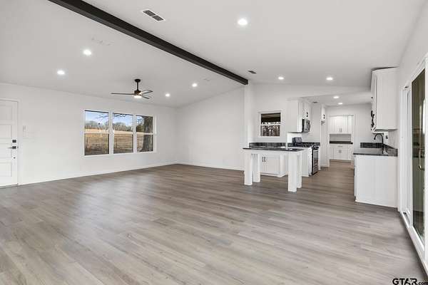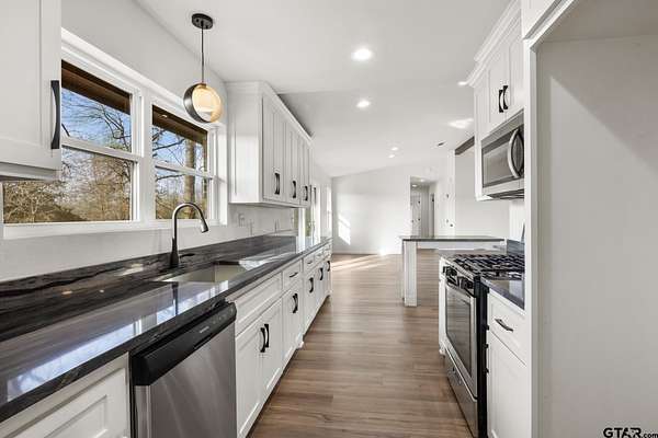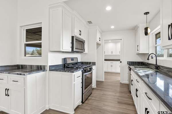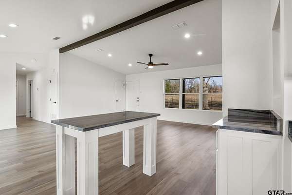 Situated on 50 rolling acres, this 3 bed, 2 bath property is the ideal tranquil ranchette. The open concept living and dining area creates a welcoming space for entertaining guests. The kitchen is a chef's dream with beautiful countertops, ample cabinetry, and new stainless steel appliances. Retreat to the primary suite with its ensuite bathroom featuring a newly tiled shower, elegant countertops, and a lighted mirror. Two additional guest rooms share a stylish hall bathroom. Outside, explore the vast 50 acres, complete with a picturesque pond for fishing, ample space for cattle, or simply enjoying recreational activities. Experience country living at its finest. Call today to schedule your showing!