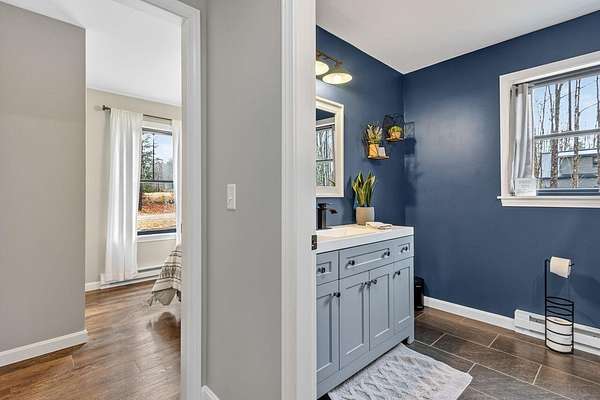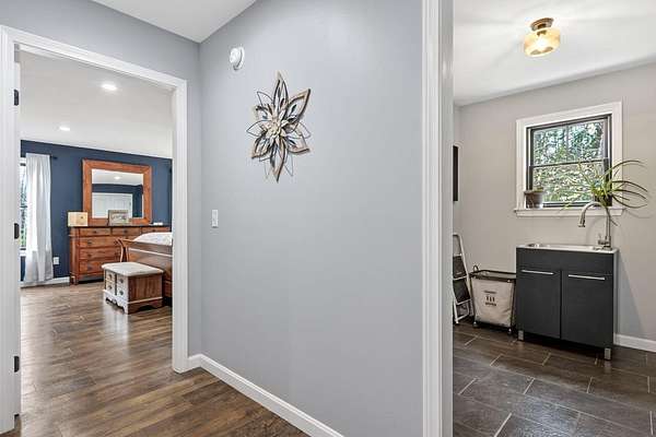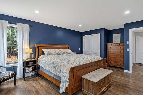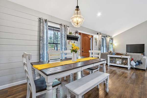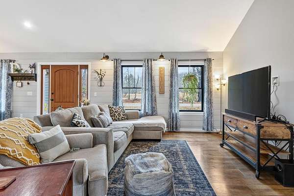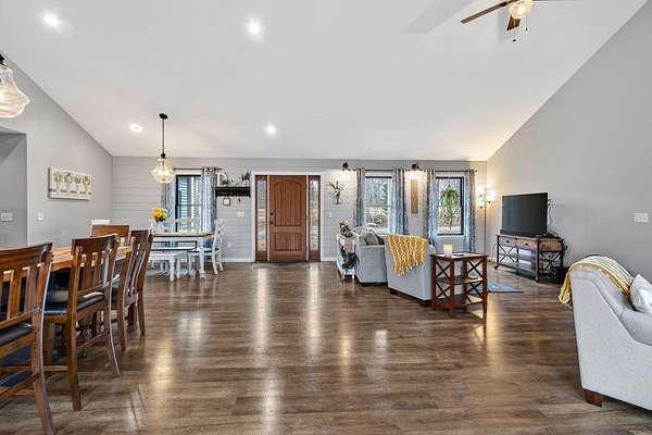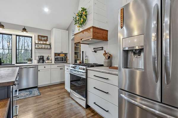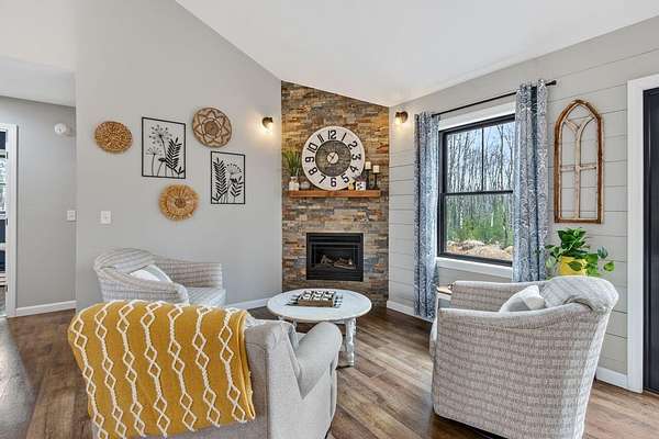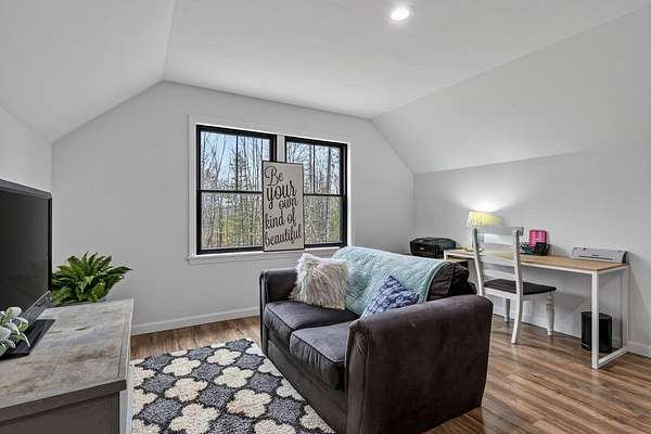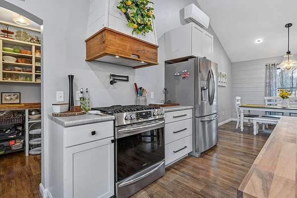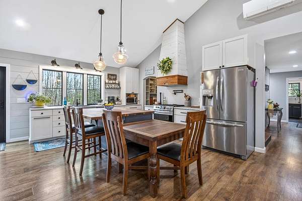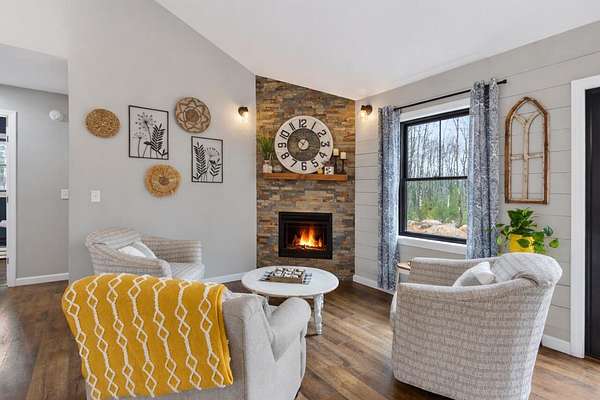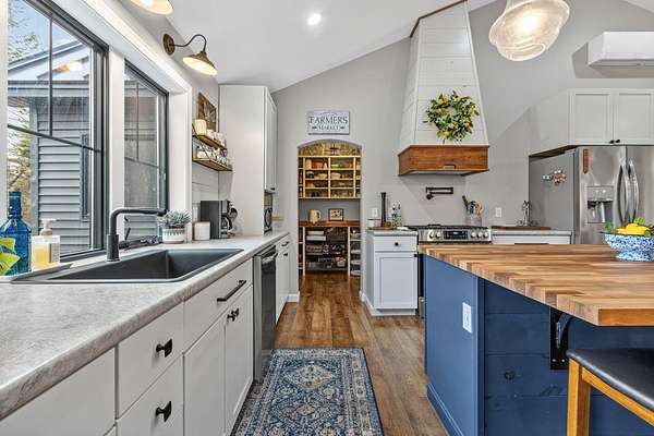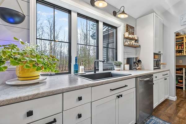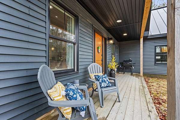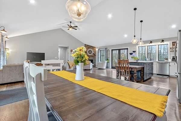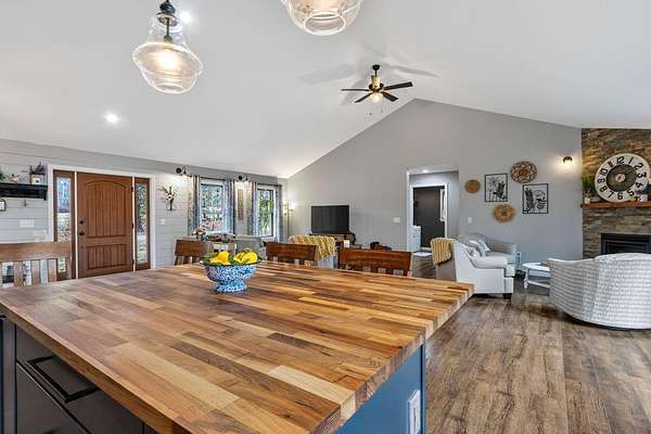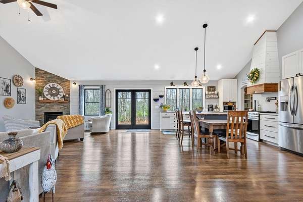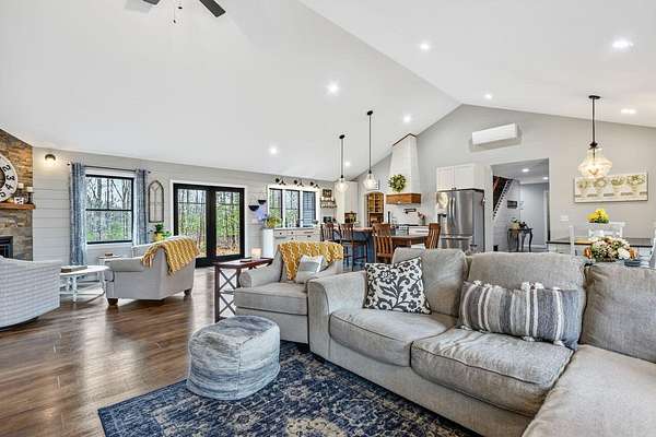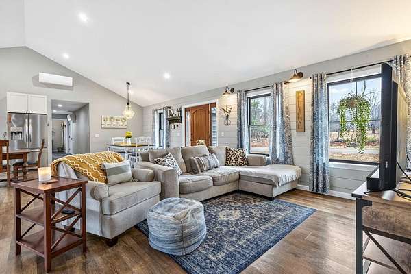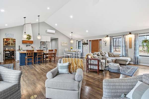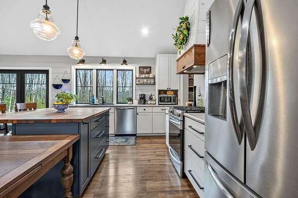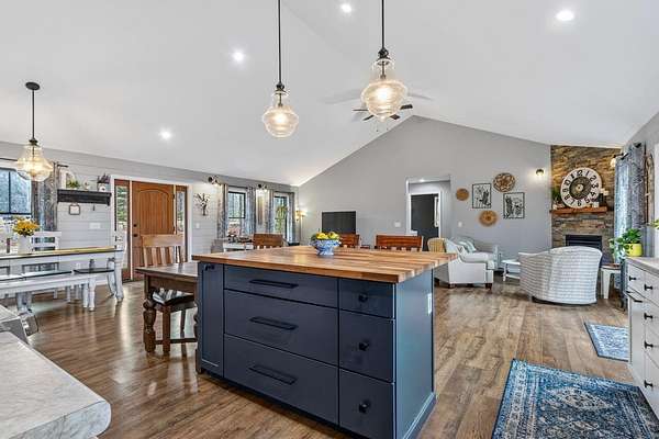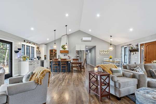 Nestled on a peaceful approximately 2-acre lot in picturesque Belgrade, this stunning 2021 custom-built home offers the perfect blend of modern efficiency, upscale finishes, and simple Maine living. With three bedrooms, two baths, and 2,352± square feet, this thoughtfully designed home delivers both comfort and style in a private wooded setting. The heart of the home is an open-concept living area. The gourmet kitchen is a true standout, featuring a custom butcher block island, handcrafted range hood, premium stainless steel appliances, and an exceptional butler's pantry that's an absolute dream. The main living space also includes a dedicated dining area, spacious living room, and a cozy sitting area. Designed for easy one-level living, the layout includes two bedrooms and a full bath off the main living area. Just beyond the kitchen, you'll find a laundry room and direct access to the attached two-car garage. The primary suite offers a true retreat, complete with a spa-like bathroom featuring a large custom tile shower with dual shower heads, radiant heated floors, and a spacious walk-in closet. Above the main level, a finished bonus family room over the primary suite and a partially finished area over the garage provide flexible space, ideal for a home office, hobby area, or potential fourth bedroom. Built with efficiency in mind, the home features a fully owned, south-facing solar array mounted on the metal roof, powering the home's electricity, including two heat pumps for heating and cooling and electric baseboard heat for the bedrooms, resulting in impressively low utilities. Outside, enjoy the beauty of a private backyard ready for your vision, whether it's a future deck or expanded outdoor living space. The property also features a stone fire pit, established flower gardens, classic rock walls, and peaceful wooded surroundings, offering abundant wildlife and year-round natural beauty. Come see why life is just a little sweeter on Dandelion Rock