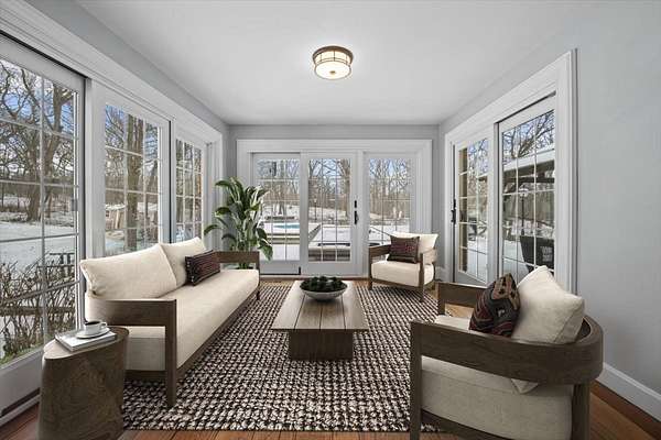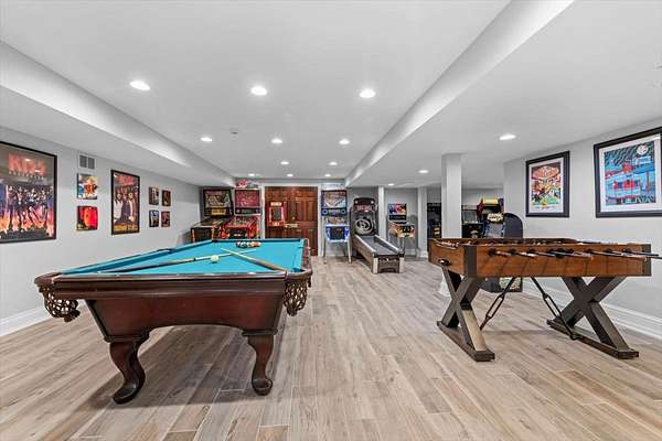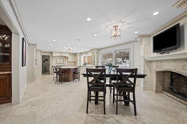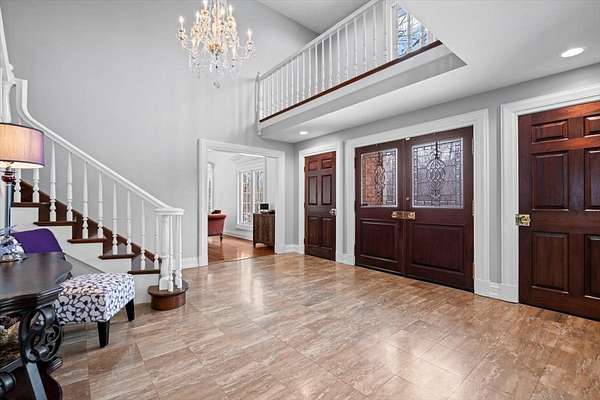 Spectacular brick Georgian offering extraordinary space, privacy, and timeless elegance in a coveted Barrington Hills setting. Perched atop a hill on five serene acres, this beautifully maintained home feels like a true retreat, complete with a sparkling in-ground pool added in 2021. A rare hidden gem, the property seamlessly blends classic architecture with thoughtful updates, including newer Andersen windows (2023), updated baths, hardwood floors throughout much of the home, five fireplaces, exquisite detailed moldings, and sun-filled, generously sized rooms at every turn. A gracious entry welcomes you, flanked by formal living and dining rooms designed for memorable gatherings. Entertaining is effortless with a convenient butler's pantry leading to the fabulous kitchen, featuring granite counters, island with breakfast bar, high-end appliances, walk-in pantry, and a sunny breakfast room with sliders to the patio. The inviting family room opens to the outdoors through triple sliders overlooking the pool, while the adjacent sunroom offers a peaceful place to unwind and take in picturesque views of nature. The main level also includes a second primary ensuite bedroom, providing ideal one-level living, an in-law arrangement, or a private work-from-home suite. Upstairs, the expansive primary suite is a true sanctuary with a spa-like bath, dual walk-in closets, and a vaulted office or sitting area illuminated by three skylights, making workdays feel like a getaway. Four secondary bedrooms, a bonus room, three additional full baths (including an ensuite), and a second laundry room ensure exceptional comfort and flexibility for family and guests. Prepare to be wowed by the showstopping finished lower level, perfect for entertaining and family fun, offering an enormous game room, rec room with wet bar, second family room, full bath and tons of storage space. Outdoor living is equally impressive with the in-ground pool featuring a sun shelf and hot tub, fire pit for starry nights, outdoor shed, and even your own chicken coop! A four-car attached garage with EV charger, service drive, and countless additional features complete this remarkable home. Set within award-winning D220 schools and offering easy access to town, Metra, shopping, and dining, this exceptional Barrington Hills residence is ready to welcome you home.