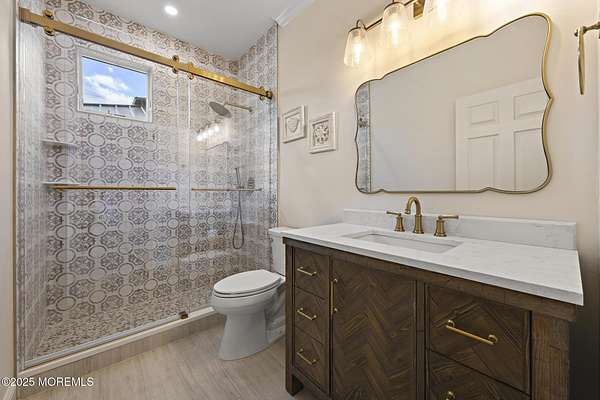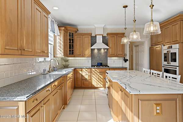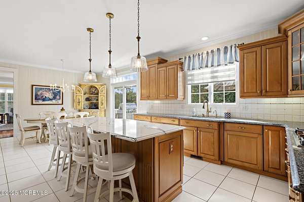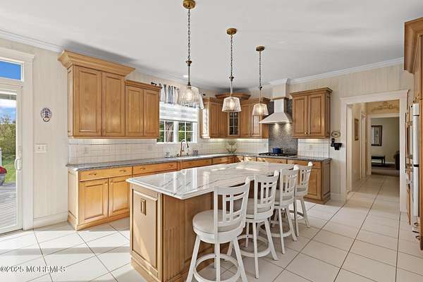 This picturesque 5-bedroom, 4-full-bath home is perfectly situated on over 2 acres. You are welcomed by an inviting floor plan featuring a formal dining room, living room, and a beautifully updated kitchen with an expansive quartz countertop island paired with cafe appliances. A first floor study, fully renovated bathroom, and first floor bedroom is perfect for multi-generational living. The expansive, sunlit family room is designed with coffered ceilings and a gas-burning fireplace. Upstairs, you'll find four generously sized bedrooms, including a luxurious primary suite with a sitting room, grand walk-in closet, and a spa-like ensuite bathroom with expansive shower and soaking tub. Fully finished basement offers endless possibilities with wet bar, full bath and plenty of additional storage space. Experience the ultimate summer lifestyle in a lush backyard retreat complete with in-ground pool and pool house. A rare find that truly stands out.