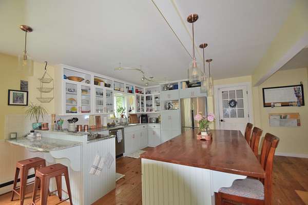 Expansive and Versatile Residence with Prime Location and Business Potential. This spacious and well-appointed home offers exceptional flexibility and functionality. The main residence features five bedrooms (3-bedroom septic), 3.5 bathrooms, and a thoughtfully designed floor plan that accommodates a variety of living arrangements. The main level includes a welcoming entryway, a generous kitchen with adjoining dining area, a comfortable family room with access to one of two rear decks located in the fenced in yard, and a formal living room complete with custom built-ins and a woodstove insertaEUR"ideal for relaxing evenings. Two additional rooms on the first floor offer versatile use as home offices, playroom, guest bedrooms, or a library. A full bathroom and half bath complete the first-floor layout. Upstairs, the expansive primary suite includes a walk-in closet, soaking tub, and separate shower. Two additional large bedrooms, a full bathroom, and a convenient laundry closet complete the second floor. An outstanding feature of this property is the attached 884 square feet of finished space with its own private entrance. This area includes multiple rooms, an additional full bathroom, laundry hookup, deck access, and a kitchenette areaaEUR"offering ideal accommodations for an in-home business, professional office, accessory dwelling, or guest suite. Situated in the Local Business District, the property presents unique opportunities for mixed-use or business purposes (subject to town approval). Conveniently located near major highways and shopping, and within proximity to a brand new walking and biking trail leading to the village, this property combines residential comfort with commercial potential. Buyers are encouraged to inquire with the town regarding the full range of permitted uses for this exceptional and versatile property.