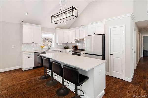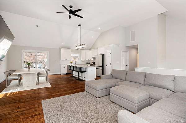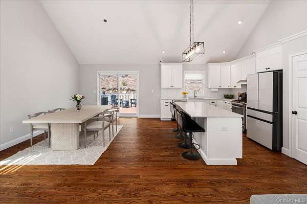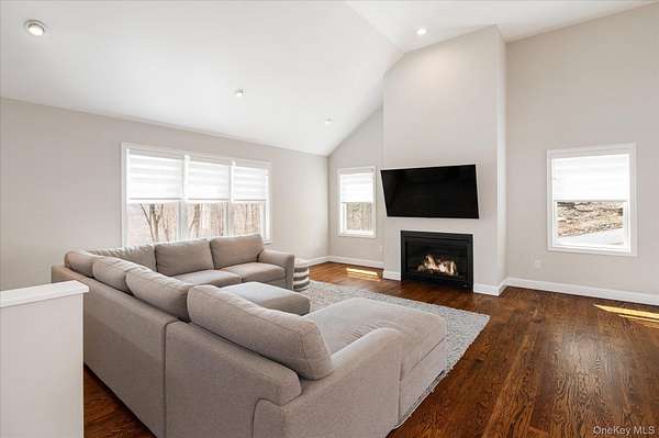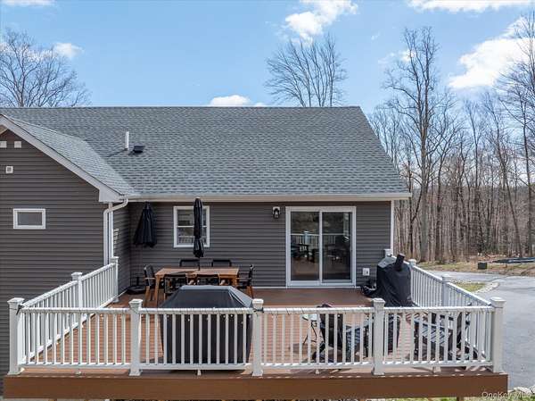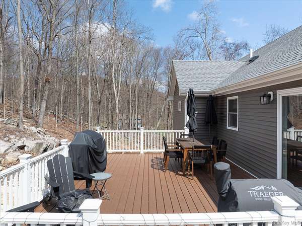 Presenting Eagle Hill-a striking private enclave where modern design meets privacy, light, and effortless living. Set on a premier homesite within this intimate community, #10 showcases a residence that is just three years young, offering the feel of new construction with the ease of immediate enjoyment. Thoughtfully designed with a dynamic open floor plan and soaring 14-foot ceilings, the interior unfolds with a sense of volume and flow. At the heart of the home, a stunning eat-in kitchen anchors the space with a dramatic oversized center island, seamlessly connecting to the living and family areas, where a fireplace adds warmth and architectural focus. Wide 4" oak hardwood floors run throughout, creating a clean, modern continuity. The layout offers exceptional flexibility with three bedrooms that live like four, including a spacious primary suite complete with a beautifully appointed full bath and an expansive walk-in closet. A total of three full baths ensures comfort and convenience for both everyday living and guests, while main-level laundry enhances effortless living. Step outside to an oversized Trex deck that extends your living space into the surrounding landscape-perfect for entertaining or simply taking in the serene, scenic setting. The home is equipped with central air and a dual heat pump system, paired with high-efficiency spray foam insulation for year-round comfort and impressive energy savings. Additional highlights include Andersen windows throughout, a two-car garage, and a substantial separate workshop-ideal for hobbies, storage, or creative pursuits. Perfectly positioned as the first home upon entry into this thoughtfully designed community, and surrounded by 4.43 showcase acres with stunning views, this property offers both a welcoming presence and a sense of privacy. Located in the Mahopac School District, this pristine, move-in-ready residence delivers the best of modern construction-without compromise.