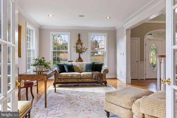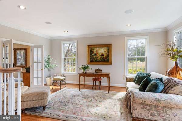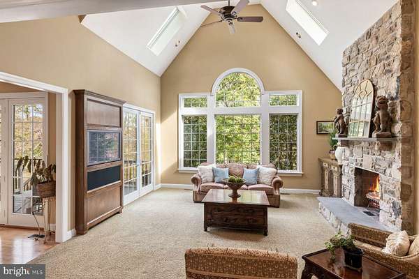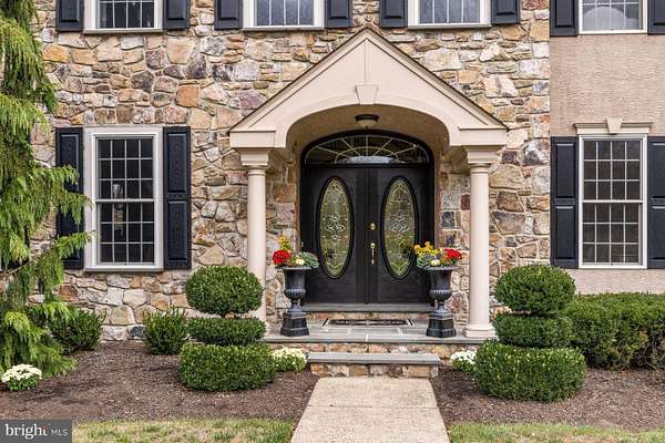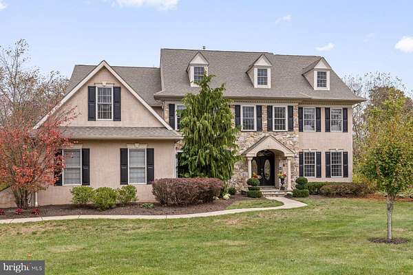 Tucked away on a quiet cul-de-sac in the desirable Rolling Hills community, this elegant light-filled 4,638 sf home embodies graceful country sophistication with a modern sensibility. Surrounded by 2.44 acres of lush landscaping, open lawn and light woods, this executive-style residence offers privacy, tranquility, and a quintessential Bucks County setting-complete with views of the historic Erwinna covered bridge. Inside, the home's traditional design shines through lofty 9' ceilings, rich oak floors, and extensive millwork. The large and welcoming greeting room foyer opens to formal living and dining rooms, while the chef's kitchen-featuring granite countertops, newer stainless appliances, and a walk-in pantry-flows seamlessly into the breakfast room and family room with its vaulted ceiling, floor-to-ceiling stone fireplace, and Palladian window. French doors open to a spacious Trex deck and the lower, expansive paver terrace overlooking the wooded backyard, creating an ideal setting for entertaining. A private study with French doors to its private Trex deck offers the perfect home office or studio. Upstairs, the primary suite includes a sitting-dressing room, enormous walk-in closet with boutique-style built-ins, and the spa-like bath with separate vanities, whirlpool tub and walk-in glass shower. Three additional bedrooms-one en suite-feature generous closets and natural light. The unfinished lower level with 9-foot ceilings and plumbing for a future bath offers endless possibilities for expansion. Additional features include a NEW ROOF, large 3-car garage, stand-by generator, sound system throughout, efficient propane heat and hot water, high-speed well pump, and radon mitigation system. Recently refreshed with new paint, newer heat/AC zone, and septic pump, this home offers the perfect blend of polish, comfort, and well-maintained house systems for peace of mind. Ideally located amidst miles of walking trails, the Delaware River and Canal State Park, and mere minutes from Frenchtown and New Hope, this home is a peaceful retreat that remains perfectly connected just 90 minutes to NYC, 75 to Philadelphia. Come experience refined country living in Tinicum Township.