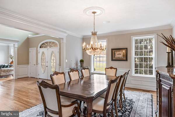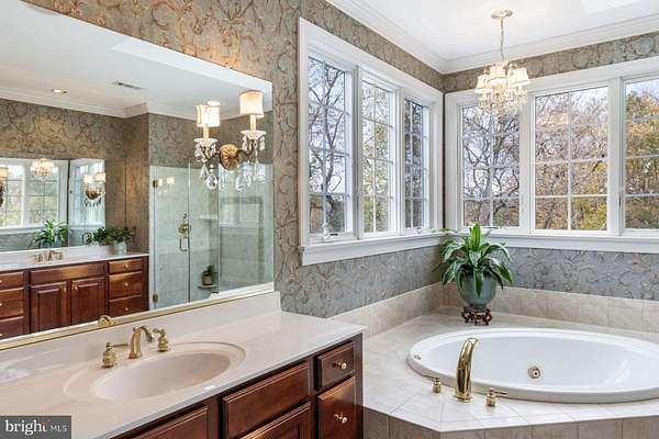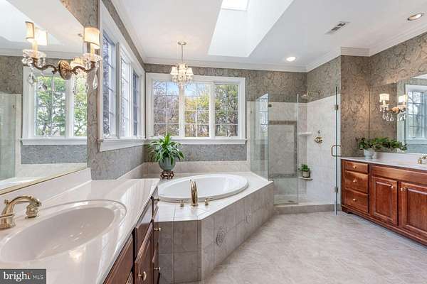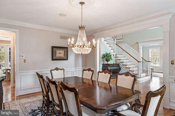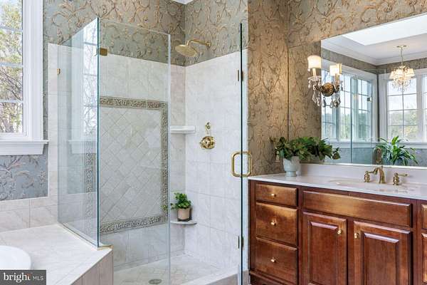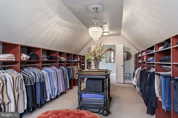 - Additional Stairway, Attic, Butlers Pantry, Carpet, Ceiling Fan(s), Chair Railings, Combination Kitchen/Dining, Country Kitchen, Crown Moldings, Family Room Off Kitchen, Formal/Separate Dining Room, Island Kitchen, Jetted Tub Bathroom, Pantry, Primary Bath(s), Recessed Lighting, Skylight(s), Sound System, Traditional Floor Plan, Tub Shower Bathroom, Upgraded Countertops, Wainscotting, Walk-In Closet(s), Walk-In Shower Bathroom, Wet/Dry Bar, Window Treatments, Wood Floors