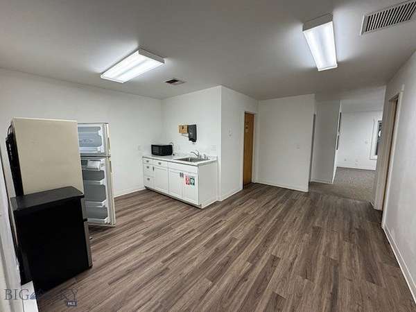 Great flex space with open office, two private offices, a break area and shop space with overhead door (10' high) and man door.