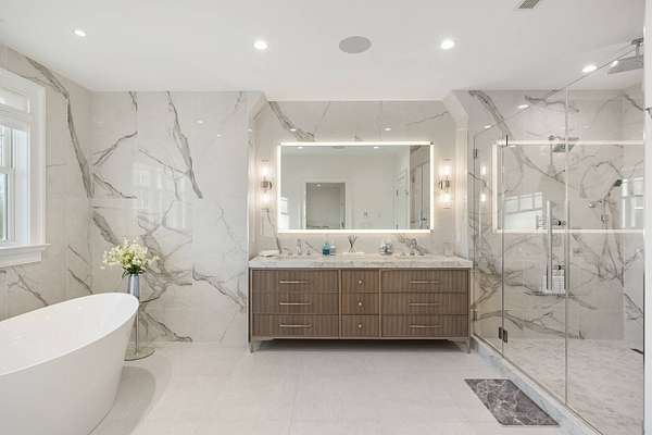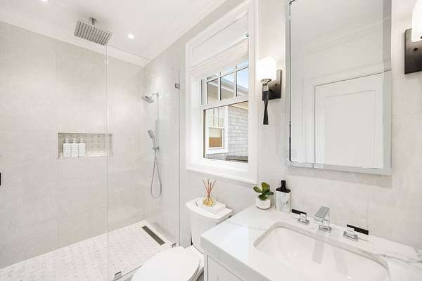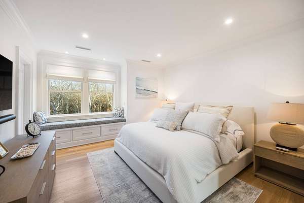 Nestled on a private 1.7-acre parcel, this breathtaking 5,300+--square-foot modern masterpiece-completed in 2025 and offering private beach rights-represents the pinnacle of Hamptons luxury. Flooded with natural light through expansive walls of glass and soaring ceilings, the home features five generously sized ensuite bedrooms and six-and-a-half elegantly appointed bathrooms. Wide-plank white oak flooring and panoramic views of the surrounding landscape and ocean create a warm yet dramatic coastal retreat. Lutron automated shades and smart controls elevate comfort and convenience, offering effortless ambiance and privacy throughout. At the heart of the residence is a show-stopping chef's kitchen, meticulously outfitted with professional-grade amenities: a 60-inch commercial gas range with dual ovens, full-height 36-inch refrigerator and matching freezer, a temperature-controlled wine column, and an impressive full-service bar that flows seamlessly into the great room-complete with a commercial ice maker and integrated wine-and-beverage center. A whole-house Sonos system extends across both interior and exterior spaces, while solar power, central air conditioning, and forced-air heating ensure year-round comfort and efficiency. Outdoors, a resort-caliber 18' x 42' heated gunite saltwater pool with an automatic safety cover provides the perfect setting for entertaining or serene relaxation. An attached two-car garage and meticulous high-end finishes throughout complete this extraordinary offering. Minutes from Montauk's pristine beaches and vibrant village, this brand-new estate delivers an unparalleled blend of privacy, sophistication, and modern coastal living.
