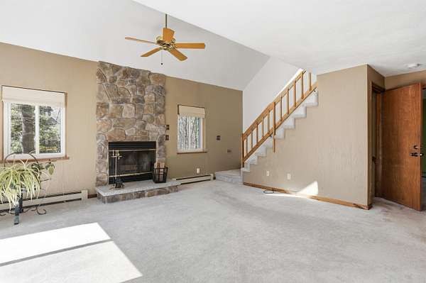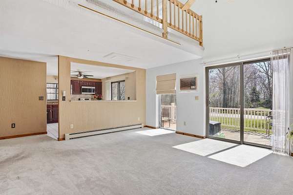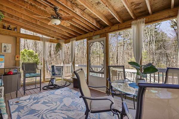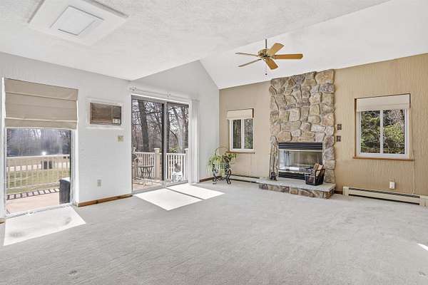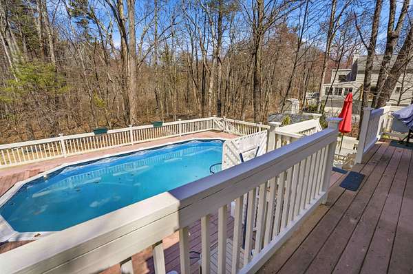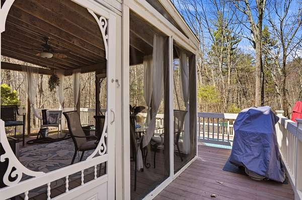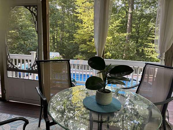 Come and see this charming two-bedroom home set on a beautifully landscaped 1.83-acre lot, offering comfort and versatility throughout. Inside, the home is warm and welcoming, highlighted by a cozy wood-burning fireplace on the first floor. The main level features an eat-in kitchen, a primary bedroom with its own small private deck, and a convenient half bath with laundry. Sliders from both the kitchen and family room lead to a spacious, updated deck—perfect for entertaining or relaxing outdoors. Upstairs, you’ll find a second bedroom, a full bath, and a versatile third room that can easily serve as an additional bedroom, loft, or home office. The finished lower level offers a large bonus room for flexible use, along with an indoor hot tub—ideal for unwinding year-round. Outside, enjoy an inviting above-ground pool, a beautifully maintained yard, and a screened porch perfect for relaxing any time of day.