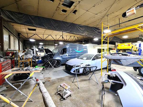 HUGE commercial opportunity in Mooresville!!! 9800 sqft commercial body shop on 1.72 acres. 22 cars can be serviced at a time. 3 car lifts. Paint booth. Front and rear parking lots. Main road access for easy entrance and signage. Front and rear garages. Multiple exterior access doors. Private office and lobby/conference room area.