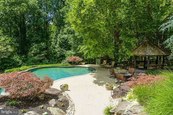 Nestled on a premiere 6.87 AC lot of scenic woodlands of Liberty Reservoir, a luxuriant 6-bedroom, 7-bath manor backing to lake-front trails. Perfectly manicured landscape with a resort-like setting, featuring a custom in-ground pool with a waterfall, Trex deck, and vast patio space-perfect for entertaining. Interior boasts over 9,000 sq ft of living space, including a grand foyer, gourmet custom kitchen, spacious living areas, main floor office, and guest bedroom. Two primary suites w/ spa bath and heated floors. Major interior renovations were completed in 2025, including new HVAC, Subzero fridge, new W/D, new DW, new water heater, new bath, flooring, paint, and fireplaces. Amazing basement is equipped with a full bar, billiards room, full in-law/au pair suite with a full kitchen and second laundry room, movie theatre, and a gym. Two large garages with space for 6 cars. Indoor and outdoor sound system. MUST SEE