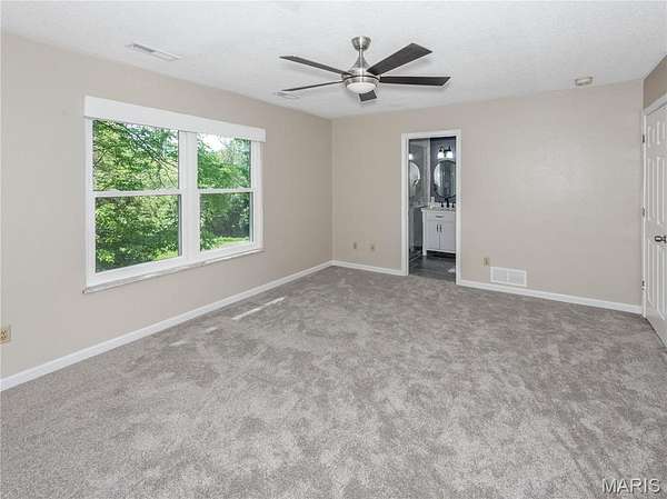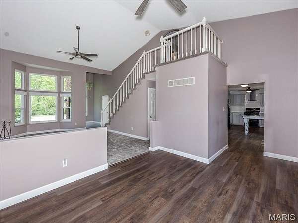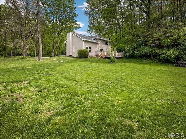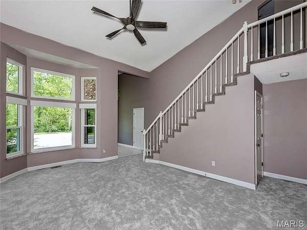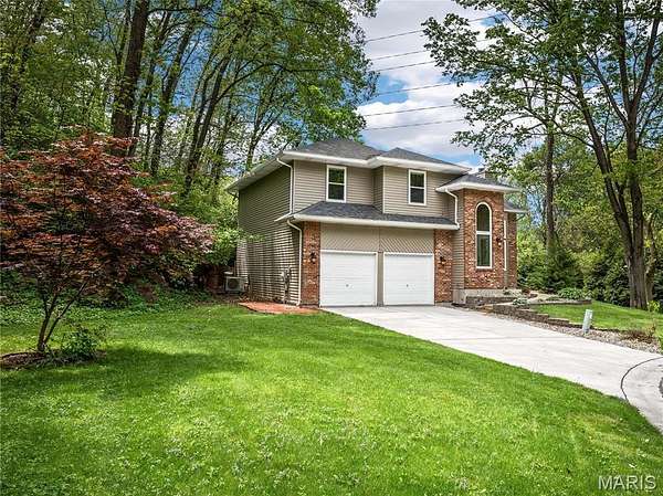 Beautiful setting! This home sits on approximately 2 acres on a cul-de-sac street. You will love the private backyard!! Many updates to this home. Walk into the entry foyer and be impressed with the 2-story cathedral ceiling in the living room and dining room, large windows to let the light in, bay window from floor to ceiling and open staircase leading to the 2nd level. Updated kitchen, appliances new in 2021 except for microwave.!! Upstairs has three bedrooms, completely remodeled full baths, brand new carpet, freshly painted Main floor laundry. Roof new in 2021, HVAC 2025 with a 10 year transferable warranty, water heater 2 years old (still under warranty.) Aeration system has been well maintained. Last service date of 3/30 of this year. Convenient location! All ready for you to make this your new home!!