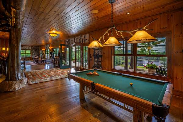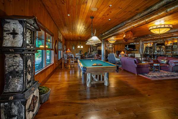 Welcome to Partridge Park, a truly exceptional property located in the Adirondack Mountains. This remarkable estate boasts over 1,300 acres of pristine private forest and features more than 5,000 feet of frontage along the Deer River. Nestled within its expansive grounds are captivating natural features, including the picturesque 6-acre, 25-foot-deep Lake Florence, as well as several secluded ponds that add to its serene charm. Partridge Park's legacy is rich and storied, dating back to the late 1800s. In the 1920s, Charles E. Bedford, a partner of John D. Rockefeller at Standard Oil Co., took ownership and further enhanced the estate. Notable improvements included the development of the Lake Florence dam's waterfalls, which once powered numerous buildings. In the the 1940s Partridge Park was transformed into a children's camp which instilled the love of the outdoors in countless young people. Today, the newly constructed lodge is testament to its remarkable past exuding the timeless warmth and style of the Adirondacks. The approach to the compound is a treat in and of itself, as you journey through the historic gates and down the three-mile meticulously manicured roads, providing abundant wildlife viewing. The lodge, designed with meticulous attention to detail, offers an unparalleled experience for its guests with over 10,000 square feet of living space and includes 12 bedrooms, 12 full baths, including a fully equipped bar, elevator, game room, dining area, hot tub, and an inviting outdoor covered porch that treats you to sweeping views of the lake and mountains. A remote trapper's cabin, guest cottage, shooting trap range, large dining pavilion and lakeside gazebo contributes to the property's allure. Whether you seek a lifetime of tranquility or a place to host and entertain Partridge Park stands as one of the most extraordinary offerings ever presented in the North East.