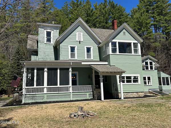 Set on 2.64 private acres, this expansive & versatile residence offers exceptional space, recent upgrades & direct access to year-round Adirondack recreation. The home features 6 BRs & 5.5 BAs, incl 3 ensuite BRs, ideal for multi-generational living, extended guests or a retreat-style residence. Recent capital improvements incl a brand-new roof & all new mechanicals, providing peace of mind & long-term efficiency. The thoughtfully designed interior offers 2 full kitchens, 2 living rooms & 2 dining rooms, creating flexible living options for entertaining or accommodating separate living quarters within one cohesive home. A graceful winding staircase w/ solid wood handrail & classic turned balusters serves as a striking architectural focal point. An adjoining 1st-floor laundry adds everyday convenience, while the partially finished basement provides add'l usable space, storage or future expansion. The layout balances openness w/ privacy, allowing each living area to function independently while maintaining natural flow throughout the home, w/ scenic views throughout. A separate 2-car garage offers ample space for vehicles, recreational gear & seasonal storage. Enjoy direct access to hiking trails, the Warren County snowmobile trail at the base of the road, and Dynamite Ski Hill within walking distance. Centrally located within three miles of Loon, Brant, and Friends Lakes and 20 minutes to Gore Mountain and Lake George. Less than one mile to the village of Chestertown with dining and shops. A rare combination of privacy, upgrades, and Adirondack lifestyle convenience.. A rare opportunity to own a substantially updated, large-scale home w/ modern infrastructure, multiple living areas, private acreage & true four-season recreational access-ideal as a primary residence, vacation retreat or high-end investment property.