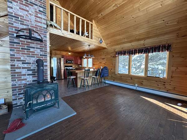 Est $3,338/moRANGELEY OVERLOOK - Chalet style log home loaded with North Woods charm! Featuring 3BR, 1BA, sun filled open floor plan with entry onto roomy deck overlooking panoramic mountain views, glimpses of Rangeley Lake. Walk out daylight basement offers additional living space. First time on the market, custom built, quality construction. Great location for 4-season adventures, snowmobile from your door, access to HOLA waterfront on Rangeley Lake. Short drive to Saddleback, area amenities. Don't miss out on this Overlook gem, inquire today!