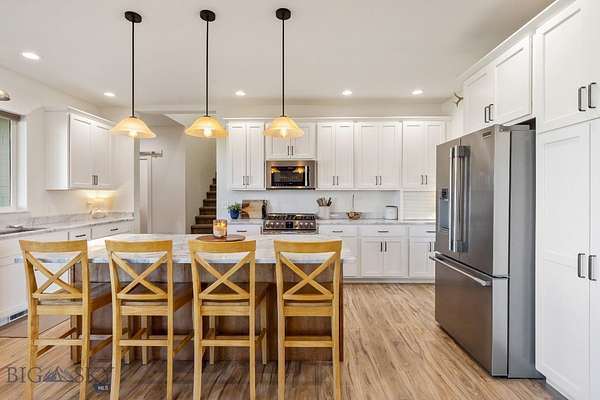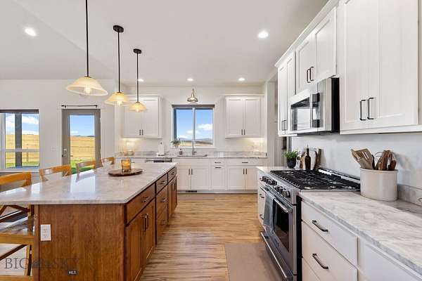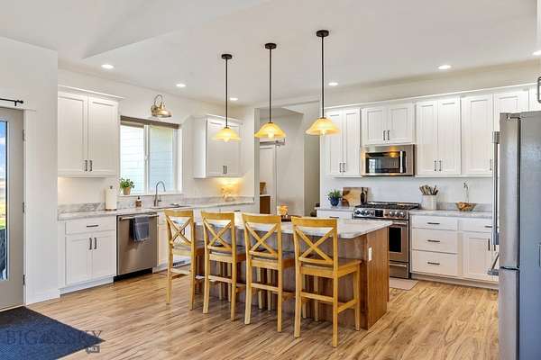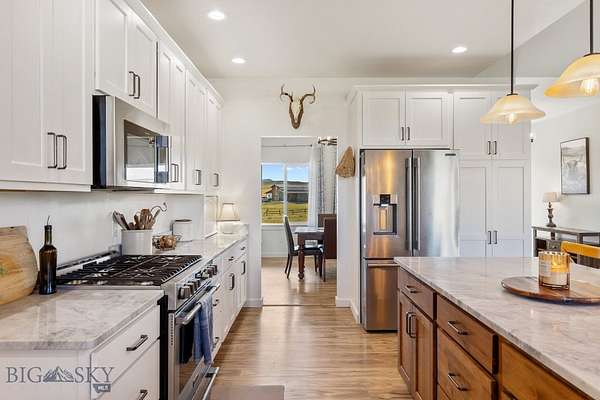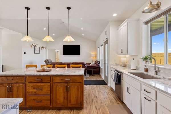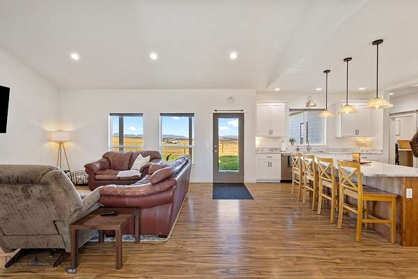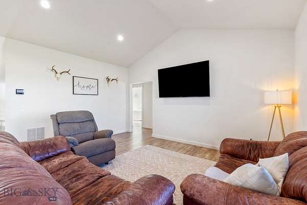 Enjoy breathtaking mountain views and the peaceful charm of country living at this beautifully designed home in Three Forks, MT. Conveniently located just minutes from Interstate 90, this home offers easy access to all that Southwest Montana has to offer. Set on a spacious lot in a quiet neighborhood, the property provides both functionality and comfort throughout. The main level features an open-concept layout with a bright and modern kitchen that includes granite countertops, vibrant accents, and ample workspace. A private dining room offers separation for more formal meals or gatherings. The larger primary suite includes generous space and thoughtful finishes, accompanied by three additional bedrooms, a full bathroom, a half bathroom, and a large laundry room. Upstairs, a flexible bonus area includes a living space, full bathroom, and a large non-conforming bedroom-ideal for guests, a home office, or additional living needs. Outside, the sodded backyard is equipped with underground sprinklers and a designated RV hook-up site with 50-amp service. The property is designed for easy maintenance and versatility. Energy-efficient features include: - 400-amp electrical service - Constant hot water heater - Spray foam insulation - Heat pump for A/C and heating (multi-zoned system) - Whole-home water filtration system Whether you're looking for a primary residence or a place with room to grow, this home offers solid construction, efficient systems, and scenic surroundings in a location that's easily accessible to nearby towns and services. Schedule your private showing today!