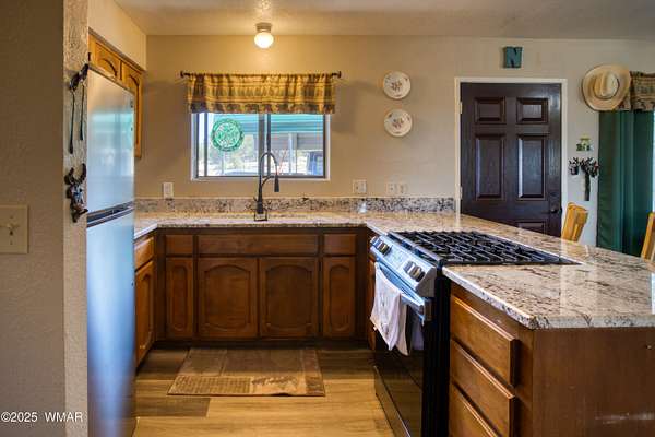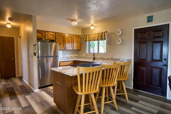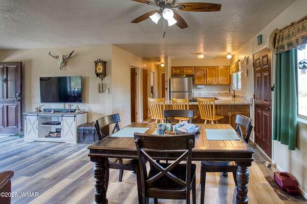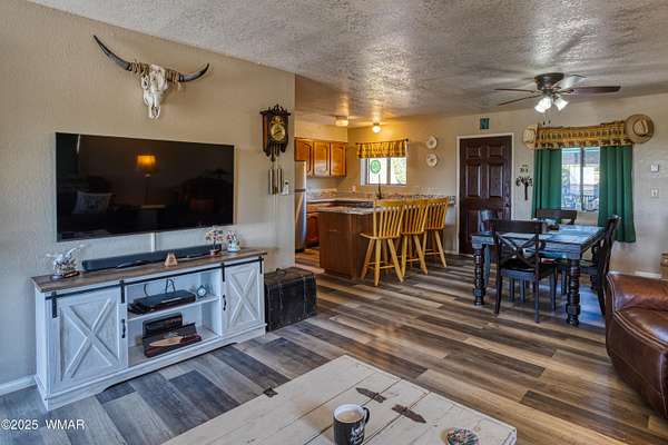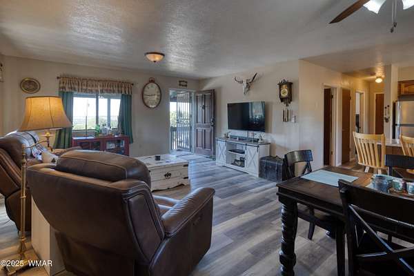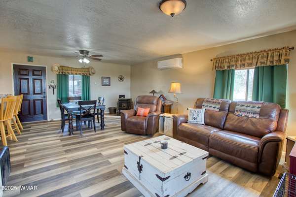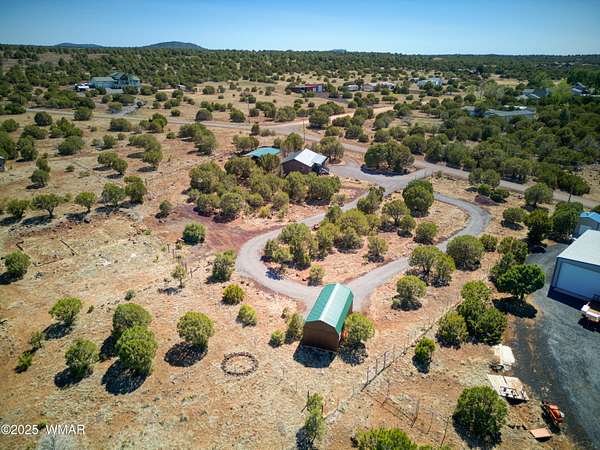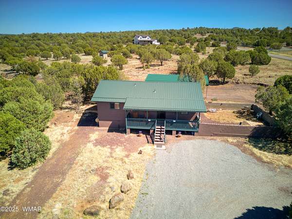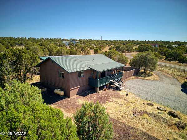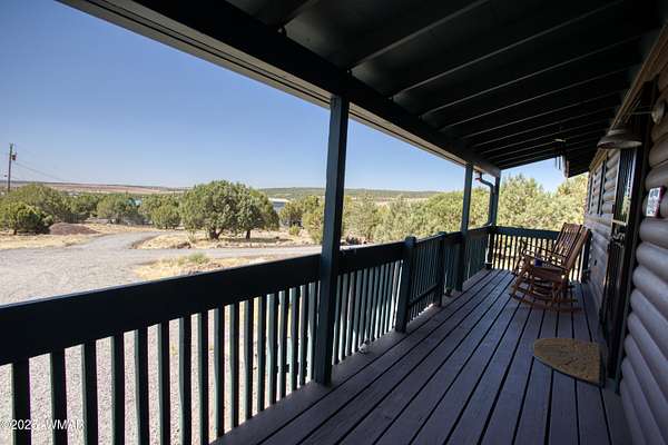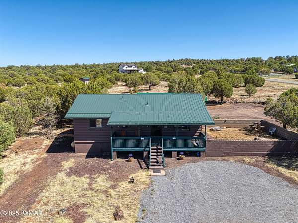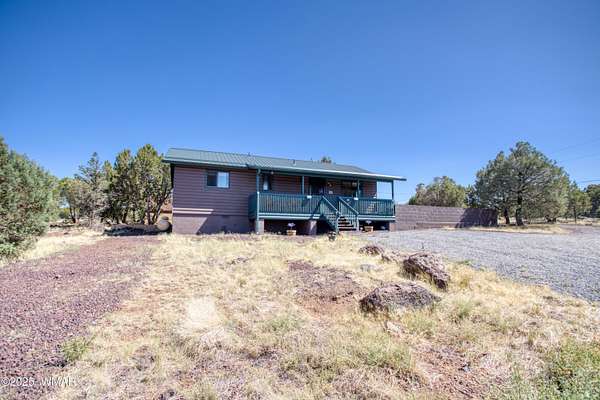 Rustic charm meets modern comfort on 4.43 acres with panoramic views! Located in Northfork Ranches just before The Y, this 2-bedroom, 1-bathroom home offers the perfect blend of seclusion, convenience, and recreational access. Backing to State Land and just a few hundred yards from Forest Service access, from this property one could enjoy horseback riding, ATV adventures, or peaceful walks right from your doorstep. Step inside to find a welcoming great room with newer laminate flooring, a cozy pellet stove, and a newly installed mini split system for year-round comfort. The kitchen shines with updated granite countertops, natural wood cabinetry, and stainless steel appliances, all beneath a durable metal roof (approx. 6 years old). The bathroom features a fully remodeled walk-in tiled shower, and the home is built with 6-inch walls for enhanced insulation and efficiency. Enjoy sweeping views from the covered front porch or unwind beneath the newly installed oversized metal carportlarge enough to accommodate multiple vehicles. A private well with its own well house adds to the property's self-sufficiency, and a large shed with a roll-up garage door offers extra storage or workshop potential. The 2-year-old water heater and thoughtful upgrades throughout mean you can move right in and start enjoying the space. Whether you're seeking a weekend retreat, horse property, or full-time homestead, this home delivers comfort, privacy, and access to the best of Arizona's high country.