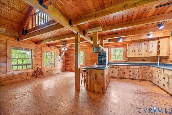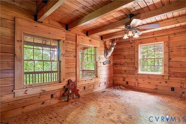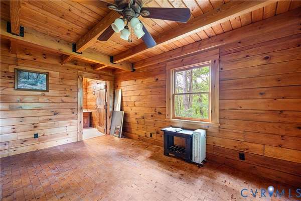 Tucked along a private stretch of the James River, this 10-acre property offers a rare chance to craft your own riverfront retreat. The cabin has great bones and rustic character, but it needs vision, investment, and elbow grease to bring it back to life. Set against a peaceful backdrop of mature trees and flowing water, the existing log structure features an open-concept living area with exposed beams, wood floors, and a layout ready for creative redesign. With 2 bedrooms, 1 full bath, and generous gathering spaces, it could transform beautifully into a weekend getaway, vacation rental, or year-round escape. Outside, the possibilities are wide open - from building a riverside deck or firepit area to clearing trails down to your private access on the James. Whether you imagine quiet mornings with a coffee and the sound of the river or lively summer days spent kayaking and fishing, this is a setting that rewards imagination. If you've been searching for a true "diamond in the rough" with rare river frontage and endless potential, this is your opportunity. Bring your tools and your vision - this Cumberland gem is sold as-is and ready for its next chapter.