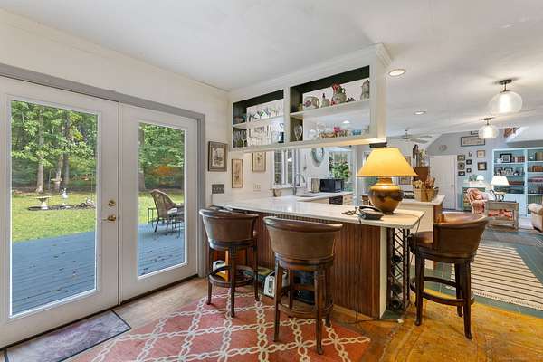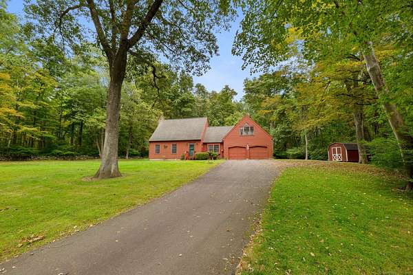 Privately set on a park-like 3.84-acre lot. Not your typical cape floor plan. This Charming Home offers an open and inviting floor plan featuring 3 bedrooms and 2.1 baths. Cathedral ceilings and custom built-ins add character and charm throughout. Kitchen with breakfast nook. Enjoy the peaceful, natural surroundings just minutes from East Haddam Village and the scenic Connecticut River. A rare opportunity to own a tranquil retreat with modern comfort and distinctive design. Large deck overlooking level, private backyard. 2 car garage; generator; oil heat. Best and Final offers requested by Sunday, Nov. 2nd at 6 p.m.