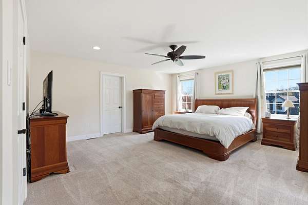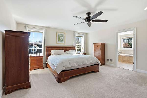 This one of a kind, stunning 5+ bedroom, 3,950+ sq ft estate is a masterclass in energy-efficient luxury living - set on over 3 private acres on a quaint cul-de-sac was built by Snowden Builders and is one of only a handful of homes in the area that surpass the NAHB Green Building Standard. The charming front porch leads you to the grand foyer entrance that immediately sets the tone that this home is different from the moment you arrive. Step inside to discover an open floor plan bathed in natural light, featuring a freshly repainted interior with refinished real hardwood floors. The gourmet kitchen opens to an upper patio - perfect for morning coffee or al fresco dining - while a formal dining room provides an elegant space for hosting. Two dedicated offices and 5+ generously sized bedrooms make this home one of a kind. The vaulted 9+ foot ceilings in the main living areas create an atmosphere of warmth for everyone to enjoy. The primary suite has a large sitting room that can be used as a nursery, craft room, dressing area or additional office. Above it all, a large walk-up attic offers a blank canvas ready to be finished into additional bedrooms, a workout area, a playroom, a studio - whatever you can dream up. Energy performance is where this home truly stands apart. Built with passive solar design, radiant hydronic floor heat in the basement, extra insulation throughout, Anderson and Pella windows and doors, a new roof (2022), and new solar panels - this home is engineered to deliver exceptional efficiency year-round without sacrificing comfort. The fully finished walk-out basement is an entertainer's masterpiece. Gather around the custom 5-stool bar, then step directly outside to your large patio and hot tub - a private retreat that makes every evening feel like a getaway. The outdoor spaces and outbuildings are equally impressive. An attached 2-bay garage handles everyday convenience, while a detached 3-bay garage - complete with a 400 sq ft finished upstairs office - provides unmatched flexibility for the hobbyist, entrepreneur, or remote professional. This additional space can will be great for a car collector or small business looking for extra space. There is also a large detached shed, a fenced-in yard, and 3 acres of land complete a property that simply cannot be replicated at this price. This is a custom home built with intention, upgraded with care, meticulously maintained by the owners and now it's ready for its next chapter.