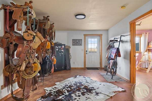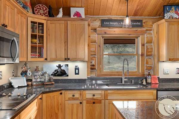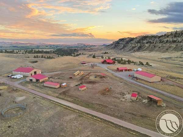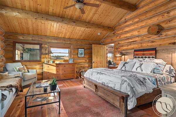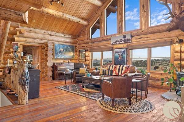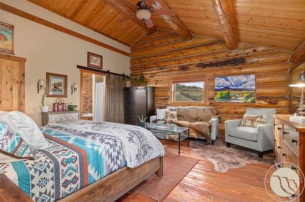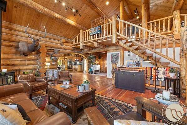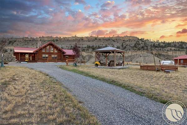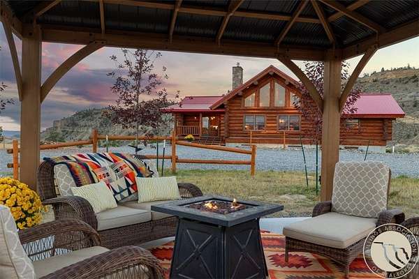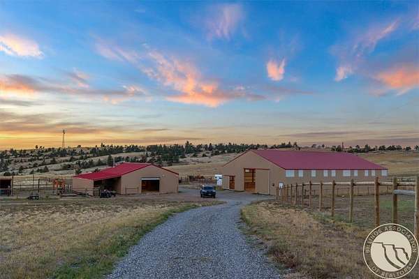 A one-of-a-kind Montana horse property spanning 132+/- acres of native grassland & rolling hills, prized by horse trainers for conditioning. The 4,738+/- sq ft log home blends rustic charm with wide-plank hardwood floors, hickory cabinets, granite counters, radiant heat, & custom lighting. A 2-bed/1-bath guest cottage adds private accommodations. Equestrian amenities include a 60*80 covered arena, 120*200 outdoor arena, 4-stall barn with tack, runouts, dry lots, steel sheds, covered hay storage, patience poles, & shop. Fenced pastures (80, 40 & 5 acres) feature one electric and two geothermal waterers, plus a well and cistern system. An extra cistern at lower corrals and proximity to town add convenience. Unique riding terrain means you'll never have to trailer out. Sweeping views and endless recreation complete this turnkey ranch you couldn't recreate. Video Tour: youtu.be/enkYe0A6Gjs