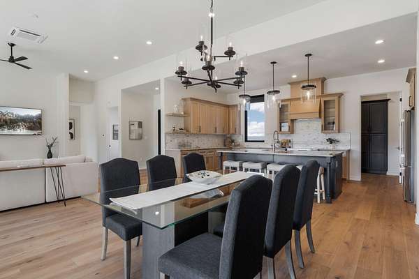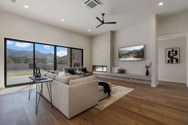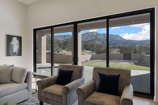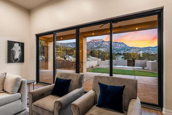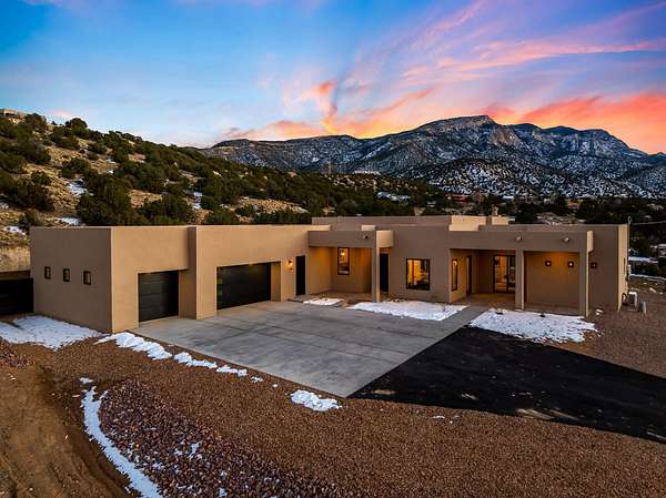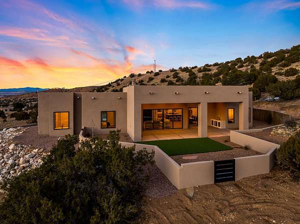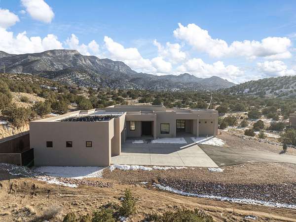 Introducing a remarkable Emerald Green-built home nestled in the picturesque beauty of Placitas, New Mexico. This eco-friendly masterpiece harmonizes sustainable living with exquisite design. Prepare to be captivated by the unparalleled beauty and energy efficiency of this one-of-a-kind residence by Spiegel Kinsley Construction. Designed with you the homeowner in mind. As you step inside the thoughtfully designed floor plan seamlessly connects the living, dining, and kitchen areas, creating an ideal environment for hosting gatherings or simply enjoying quiet evenings with loved ones. The kitchen is a chef's dream, boasting state-of-the-art energy-efficient appliances, granite counter tops, beautiful high end faucet, cabinetry designed to optimize storage and large walk-in pantry.
