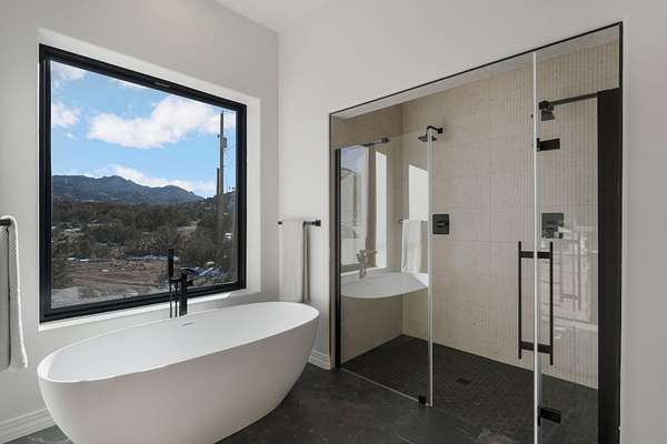 - Bathtub, Ceiling Fans, Dual Sinks, Home Office, Instant Hot Water, Kitchen Island, Living Dining Room, Main Level Primary, Separate Shower, Skylights, Soaking Tub, Walk In Closets