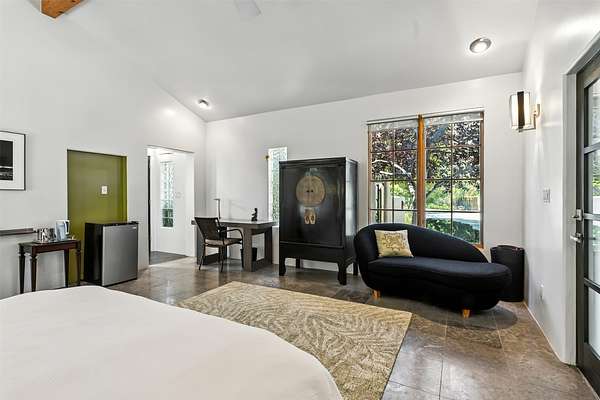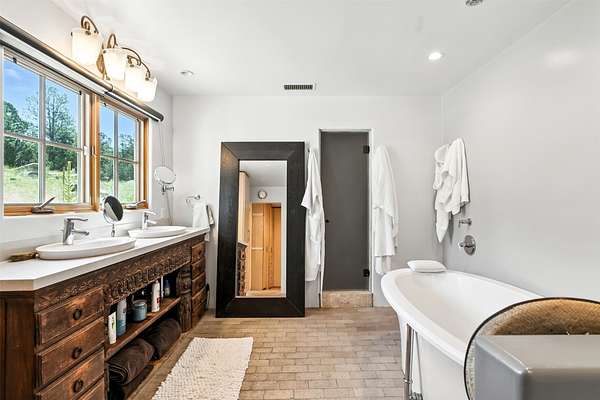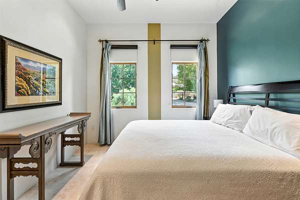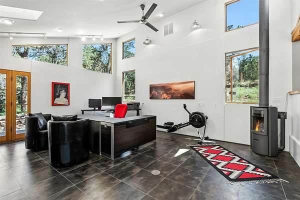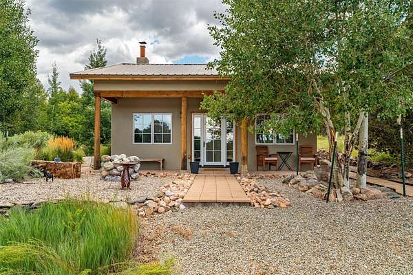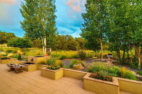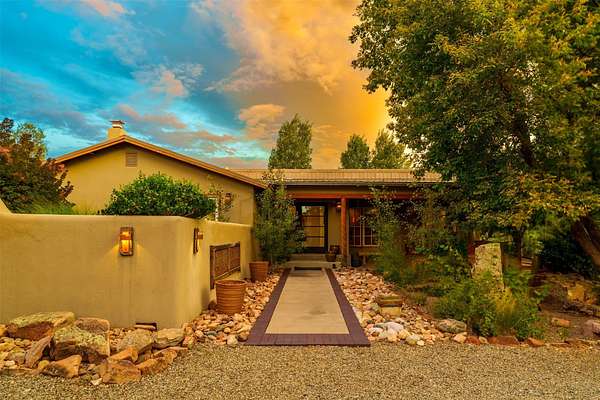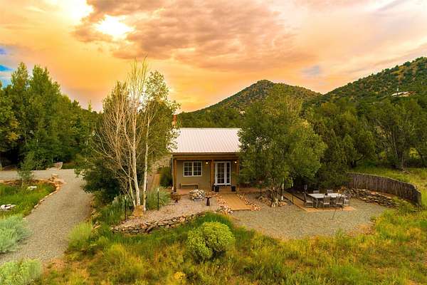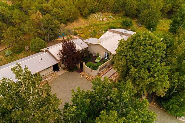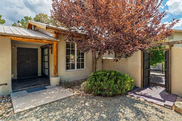 LIVE, WORK, ENTERTAIN, in your own secluded sanctuary located on 7.08 Sunlit Hills acres. 10 Sabina Lane is a sophisticated & contemporary COMPOUND offering a wide variety of living & working spaces in a stunning pastoral setting, 15 minutes from Santa Fe. MAIN HOUSE - 2,187sqft open concept Great Room w/beamed cathedral ceiling, fireplace, Chef's kitchen w/granite counters, high end appliances, 2 spacious bedrooms w/en suite bathrooms, laundry area, 5 sets of French door leading to 58 foot long covered portal. GUEST SUITE - 530sqft is steps from the main house & offers an inviting bedroom, spa inspired bathroom, custom tiles, soaking tub, is adjoined by a private tranquil terrace. STUDIO/OFFICE - 994sqft amazing work space with vaulted ceiling, view windows, areas for an office, art or other work related spaces, powder room & covered portal entry. One would never need to leave the property to conduct all their business or artistic work. CASITA - 683sqft Set apart from the main house, the casita has a full kitchen w/stone counters, kiva fireplace, covered portal, stackable washer/dryer. The casita has produced additional income as an Air B&B GARAGE - 60 sqft Fully finished, 2car capacity, storage areas. GAZEBO -196sqft An inviting space away from the home for meditation & relaxation. PAVILION -241sqft Wonderful retreat area w/fireplace, banco seating, ceiling fan, designer lighting. The property is accessed through a gated entry, a graveled driveway w/recently added retaining wall. Many additional aspects - electric convection stove top, extensive & significant landscaping,10 zone irrigation system,2 owned propane tanks (500 and 250 gallons), 5 fireplaces, an amazing flower filled meadow, healthy pinon, aspen and juniper trees, eclectic river rock pylons, antique wooden bathroom cabinet, a wealth of ceiling fans & mini split in the primary bedroom. For folks seeking a destination, full time live/work situation, please consider 10 Sabina Lane.