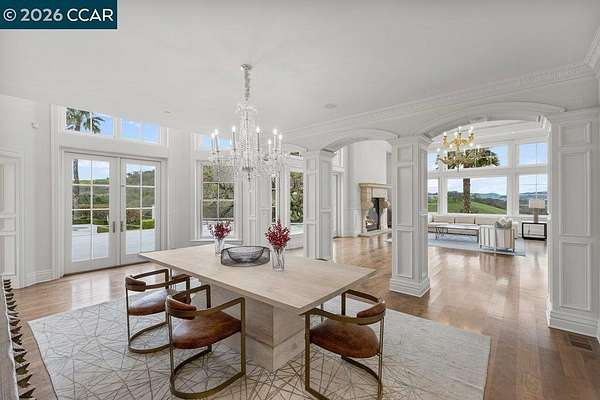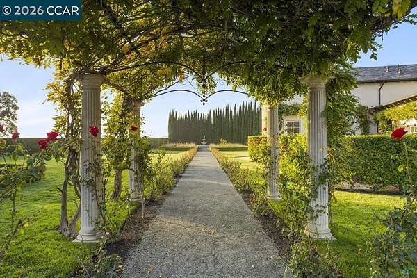 A Landmark 100-Acre Estate Set in Prestigious Alamo | The only 100-acre estate in the East Bay, 10 Serenity Lane offers unmatched privacy, scale and distinction. Inspired by classic European architecture, the residence pairs quiet sophistication with remarkable potential. A gated, Crepe-Myrtle-lined drive leads to sweeping natural vistas, manicured gardens and thoughtfully designed outdoor spaces. Inside, expansive rooms support refined living and elevated entertaining, with multiple viewpoints capturing the surrounding hillsides. Signature amenities elevate the experience, including a 20-car showcase car barn, an inviting club room and a temperature-controlled wine cellar—ideal for collectors and connoisseurs. Outdoors, the grounds reveal vineyard elements, flourishing gardens and a resort-style pool and cabana that enhance the property’s retreat-like atmosphere. This is a rare opportunity to secure the East Bay’s premier legacy estate before its planned renovation, offering significant upside in one of the region’s most coveted luxury enclaves.