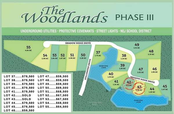 Est $496/moBeautifully planned neighborhood in the Northeast Jones School District with large wooded lots, lake privileges, street lights, and underground utilities. Lot #51 has 2.08 acres and is a gorgeous place to build your dream home.