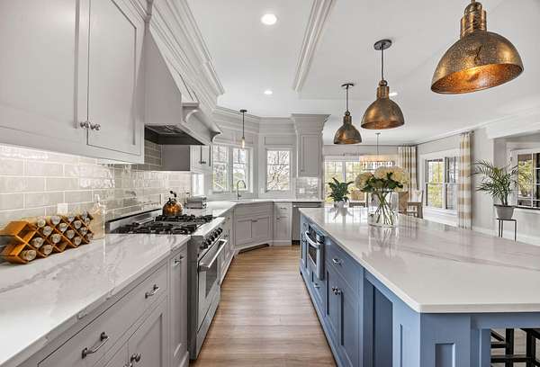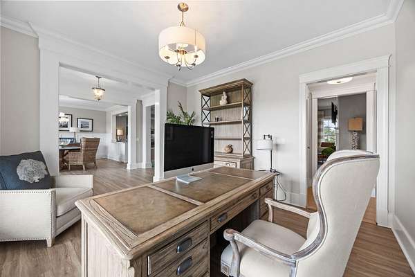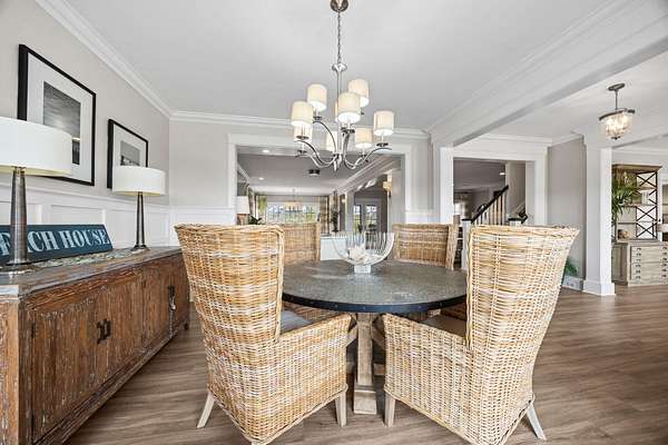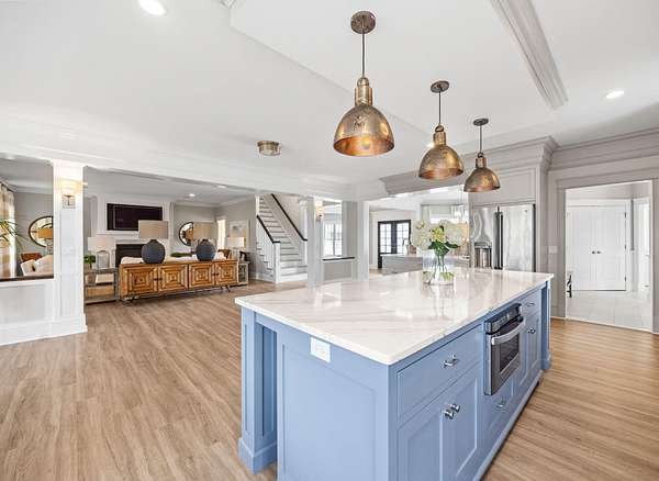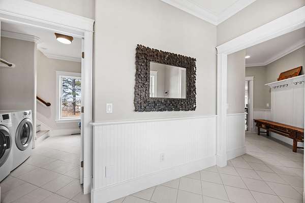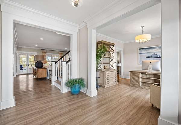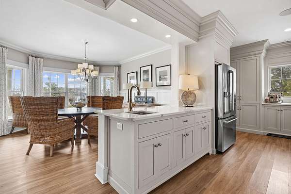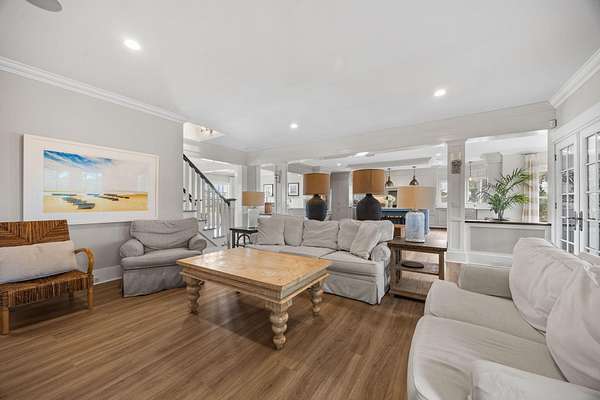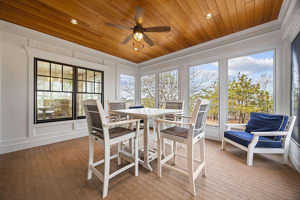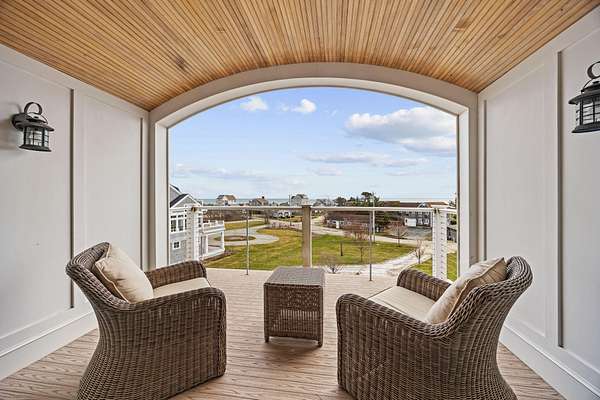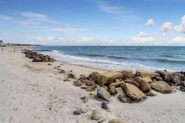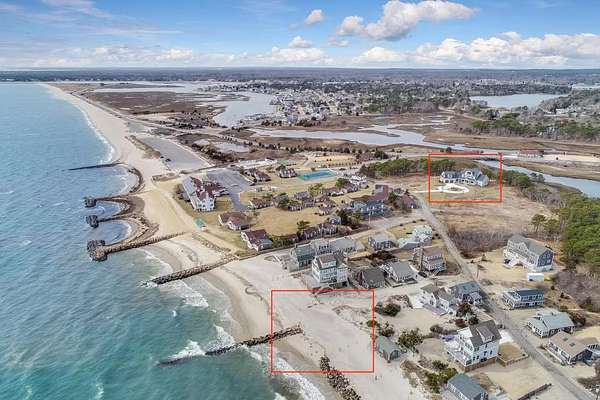 This beautiful Coastal New England / Nantucket-style home overlooks scenic West Dennis Beach and is abutted by Uncle Stephen's Pond. Custom built in 2016 by Pecoy Signature Homes, the residence spreads 5-bedrooms and 5.5 baths over 4,834 square feet of thoughtfully designed living space, with natural light and water views throughout. A gracious entry introduces an expansive open-concept layout where scale and sophistication meet effortless livability. The main level features a stunning great room, private office, mudroom, laundry, and multiple dining areas, all centered around a showpiece chef's kitchen. Appointed with an oversized quartz island, custom cabinetry, a vented NXR range, wet bar, and a generous walk-in pantry, the space is ideal. The main-level primary suite offers a serene retreat, complete with a spacious walk-in closet and a spa-like en suite bath. Upstairs, three well-appointed en suite bedrooms provide comfort and privacy for family and guests, complemented by an additional living area. The third-floor loft serves as a sophisticated lounge with wet bar, opening to a private deck. The houses on Uncle Stephens Rd share a private ocean beach (pictured).