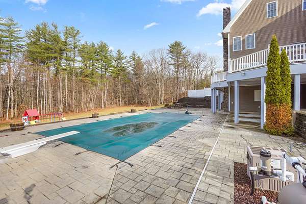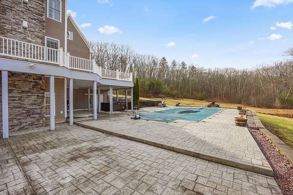 Welcome to an exceptional luxury estate offering nearly **6,000 sq ft of above ground living space set on a private 3.34-acre lot on a cul-de-sac abutting conservation land for maximum privacy in one of Hudson’s most desirable neighborhoods. This impressive Colonial showcases 5 bedrooms, 4.5 bathrooms, and 13 total rooms, thoughtfully designed with high-end finishes throughout, including hardwood flooring, multiple fireplaces, high ceilings, plantation shutters, and an open, flowing layout ideal for both everyday living and entertaining. The home offers expansive living across multiple levels, including a beautifully finished lower level featuring 1,286 sq ft of additional living space complete with a 3/4 bath, fireplace, bar area, and french doors with direct exterior access, perfect for entertaining, extended living, or guest accommodations. Step outside to your own private oasis featuring an in-ground pool, patio, and hot tub, all surrounded by beautifully landscaped grounds. A spacious deck and open porch extend your living space outdoors, creating the perfect setting for gatherings or quiet relaxation. Additional highlights include central air, forced air heating, whole-house generator, and quality construction throughout, central vac, intercom system, providing efficiency, and peace of mind. Set back from the road for privacy yet conveniently located for commuting, shopping, and dining, this property offers the perfect blend of luxury, space, and lifestyle. Link to Tour for even more photos!