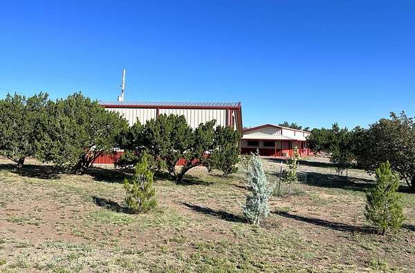 Est $3,634/moNestled on 9.8 acres, this home features all steel framing, covered porches, a workshop, RV storage, and a carport. The open floor plan includes 2 bedrooms, 2.5 baths plus an office, with recessed lighting and 10 ft. ceilings allowing for ample natural light from Pella windows. Beautiful landscaping includes irrigation lines and a catchment tank, along with a 25 GPM well. The workshop has a gas furnace, car lift, and a bath. An adjoining 17 acres is available for an additional $135,000.
